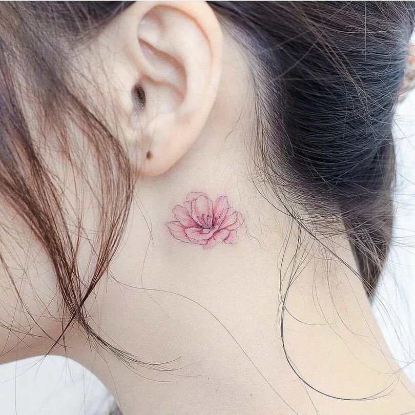 Un tatouage à cet endroit est facile à cacher et ne se voit pas. Le motif sur le lobe de l'oreille semble intéressant, mais il n'y a pas de place pour l'imagination. Placé derrière l'oreille, il a l'air original.