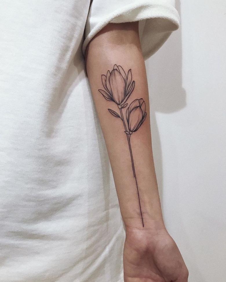 Ces motifs sont choisis par des personnes sensuelles. Un dessin de plante ou de fleur a la signification de l'amour et de la tendresse. Moins il y a de lignes dans l'esquisse, plus le tatouage est beau.