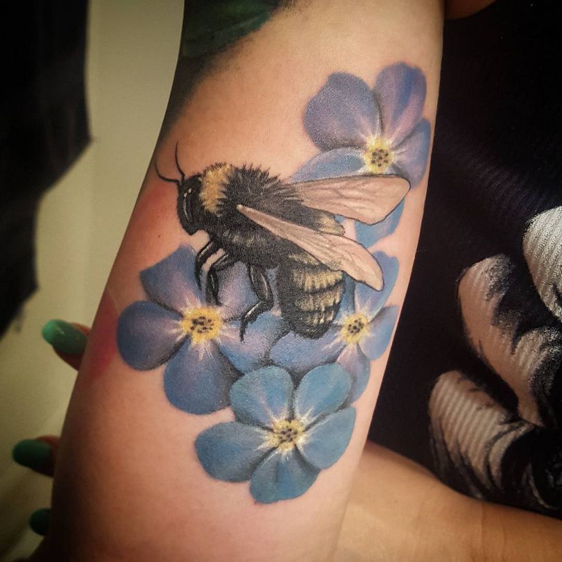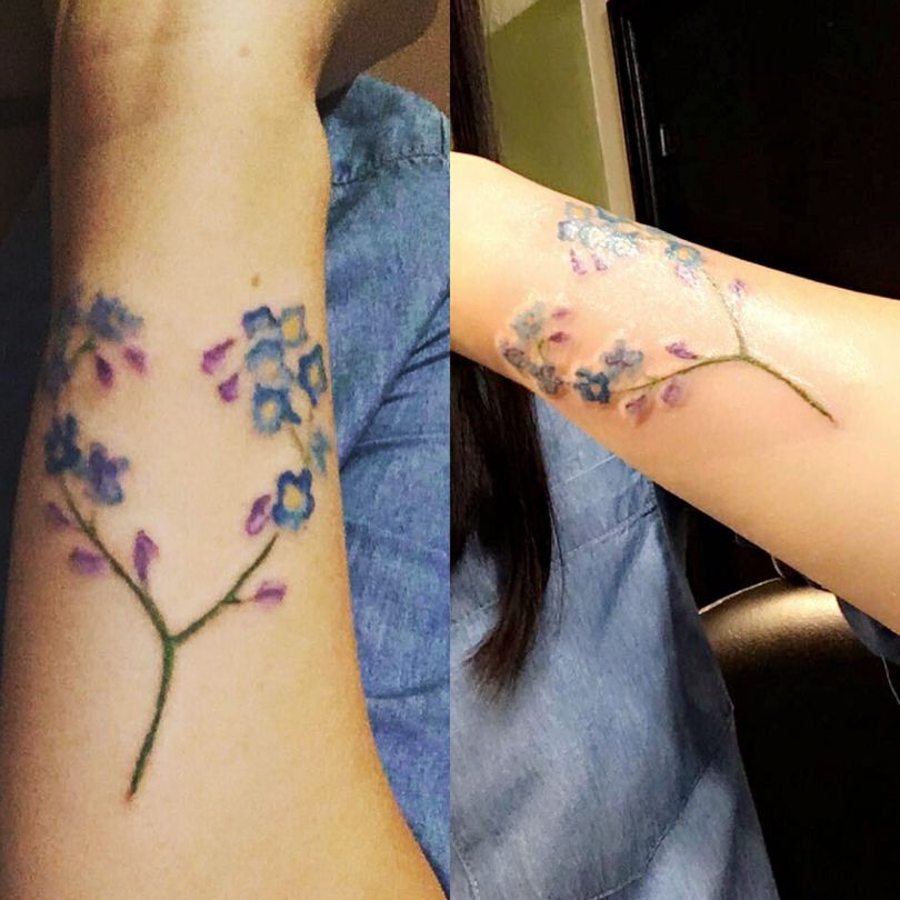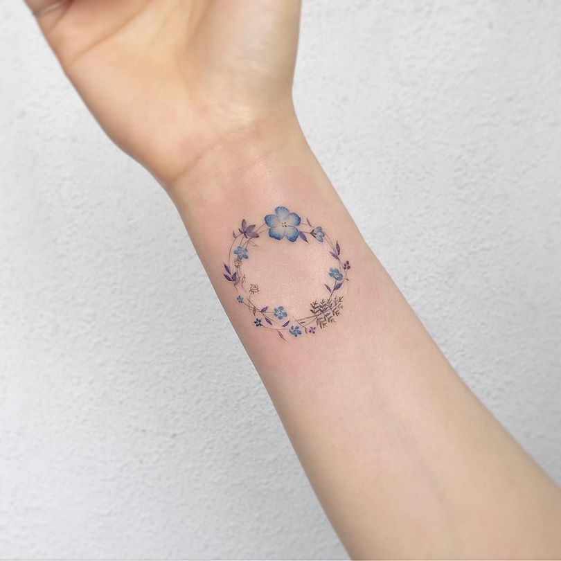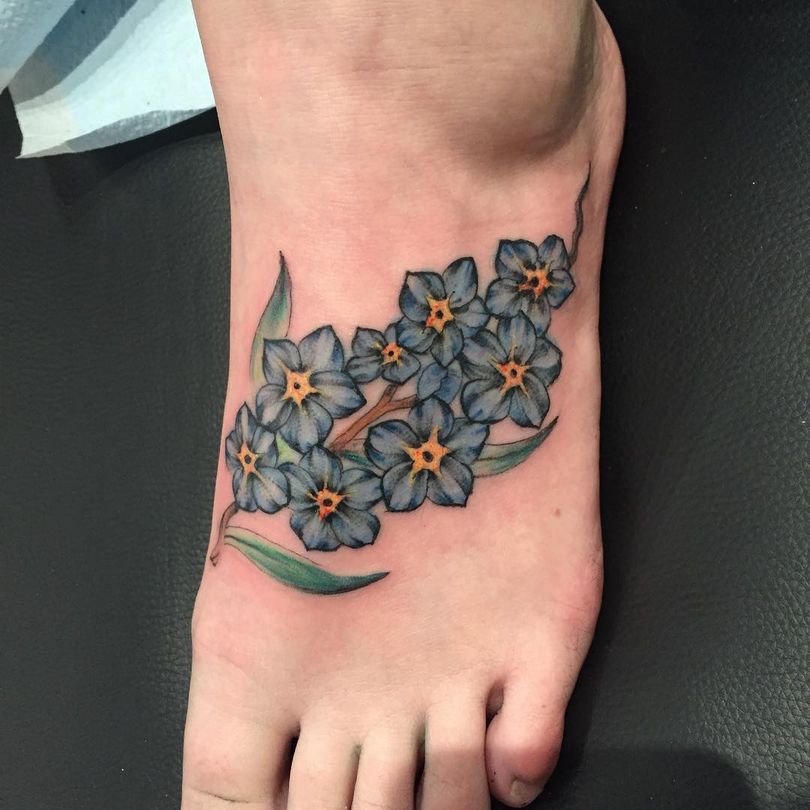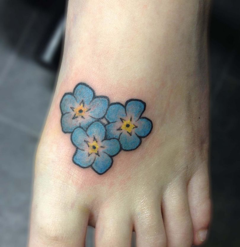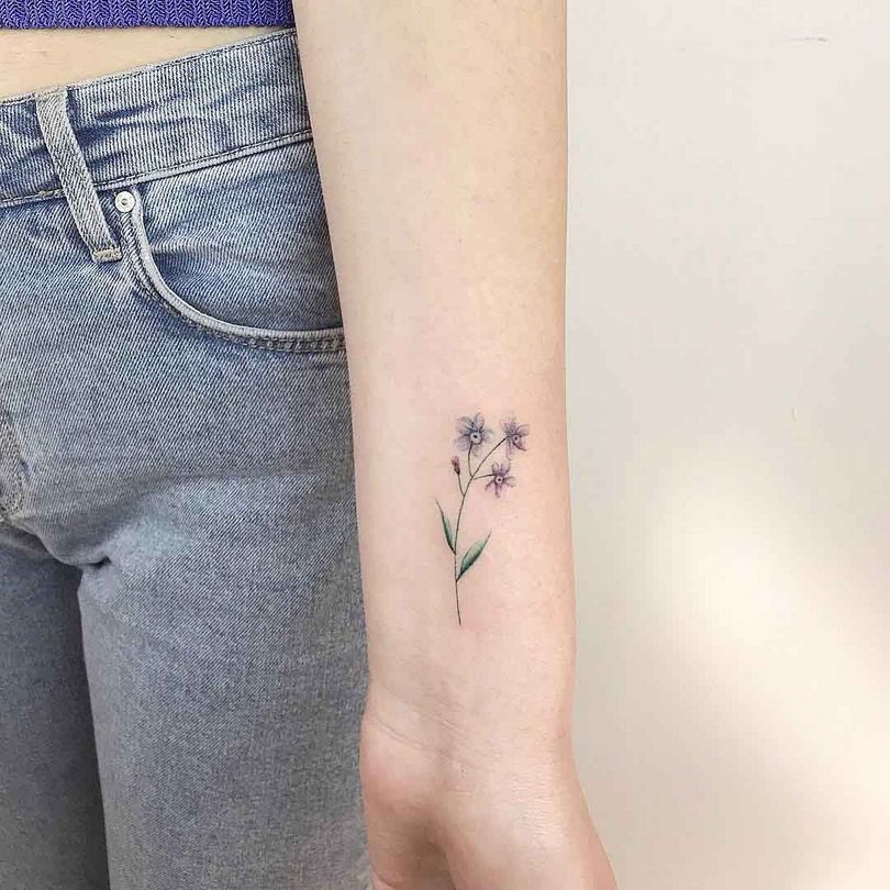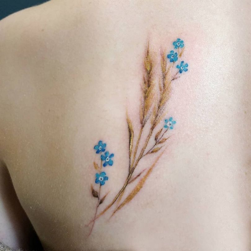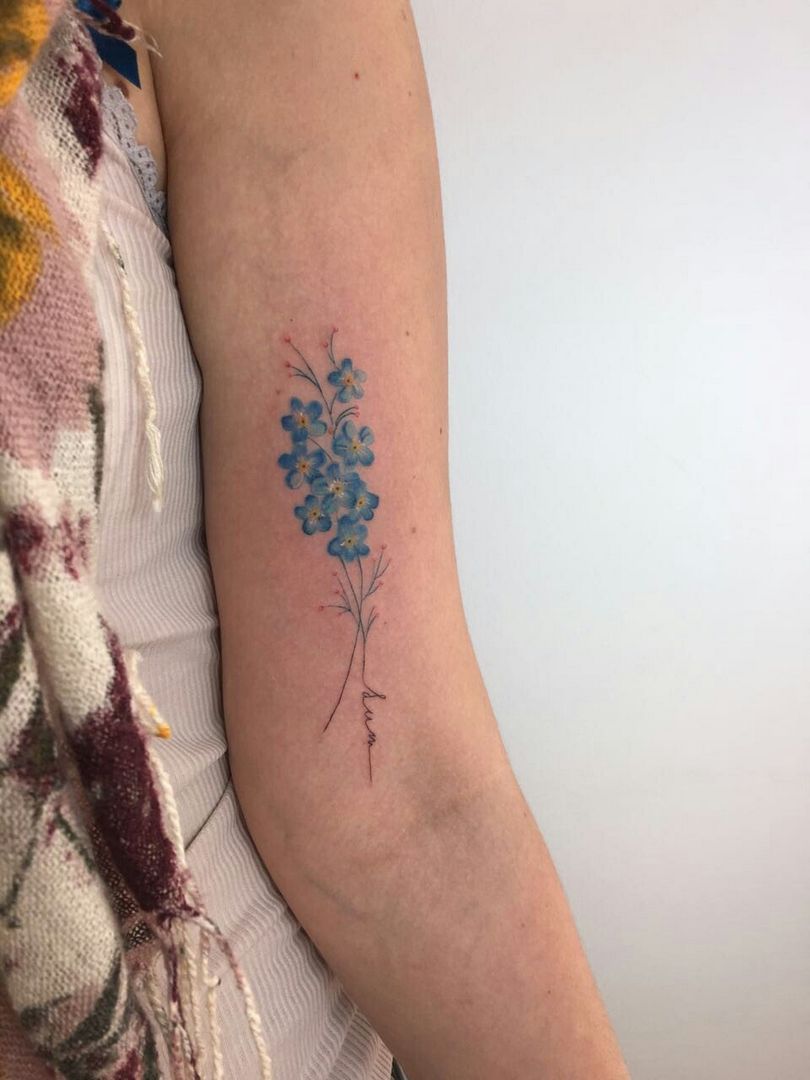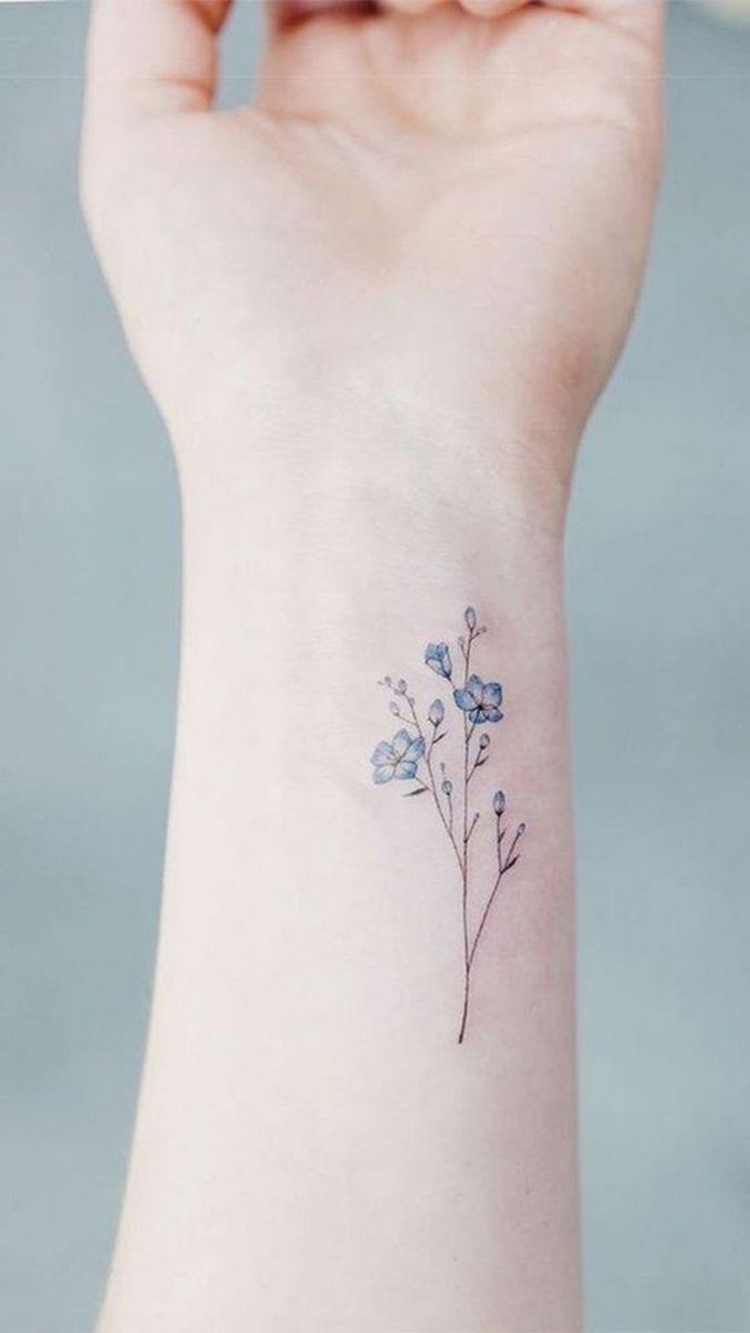 De vergeet-me-nietje tattoo ziet er overal even goed uit. Meestal wordt het gedaan op de onderarm, schouders en ribben, op de schouderbladen, dijen, in de bikinizone, op de enkels.
