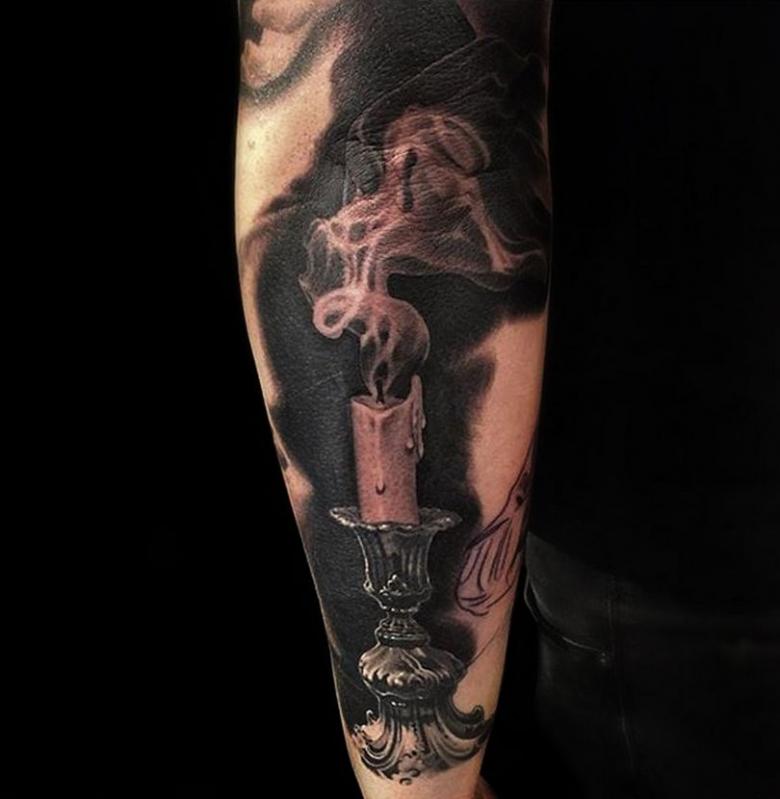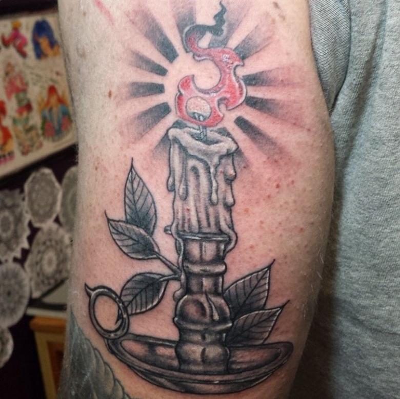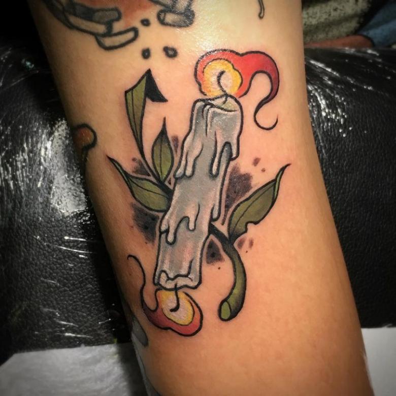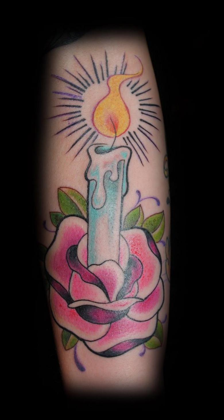 Schematische of artistieke tatoeages, de kaars kan een kleine vlam van hoop voorstellen, die de duisternis in iemands leven verdrijft. Dergelijke tatoeages worden vaak gezet om dierbaren, levensgebeurtenissen of keerpunten te herdenken, als herinnering aan de afgelegde weg en behaalde successen.