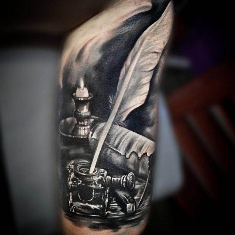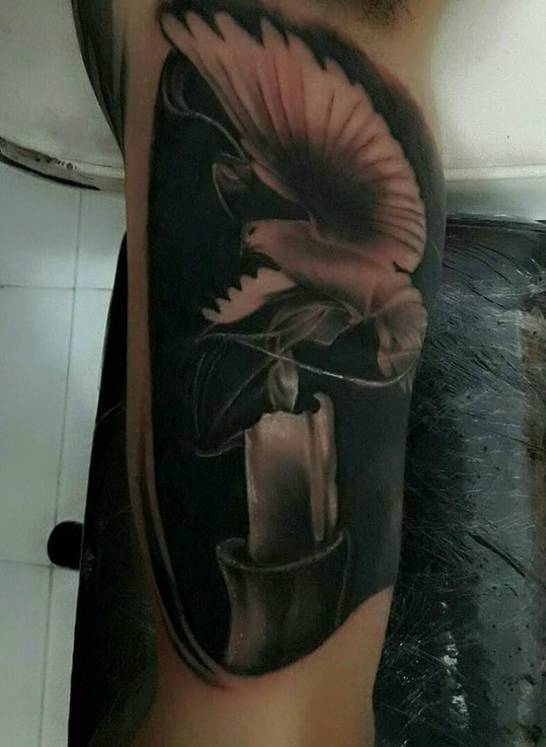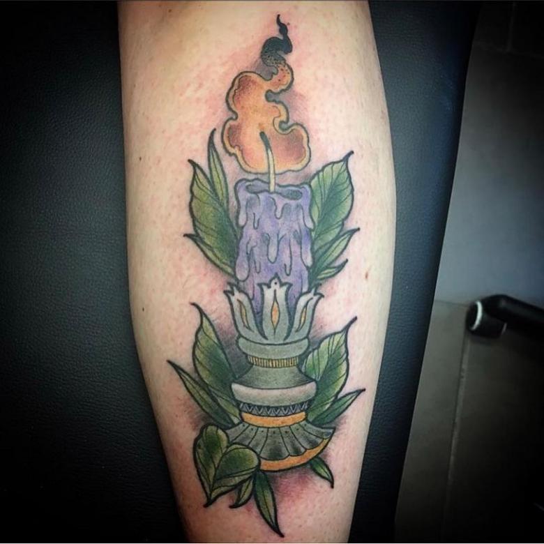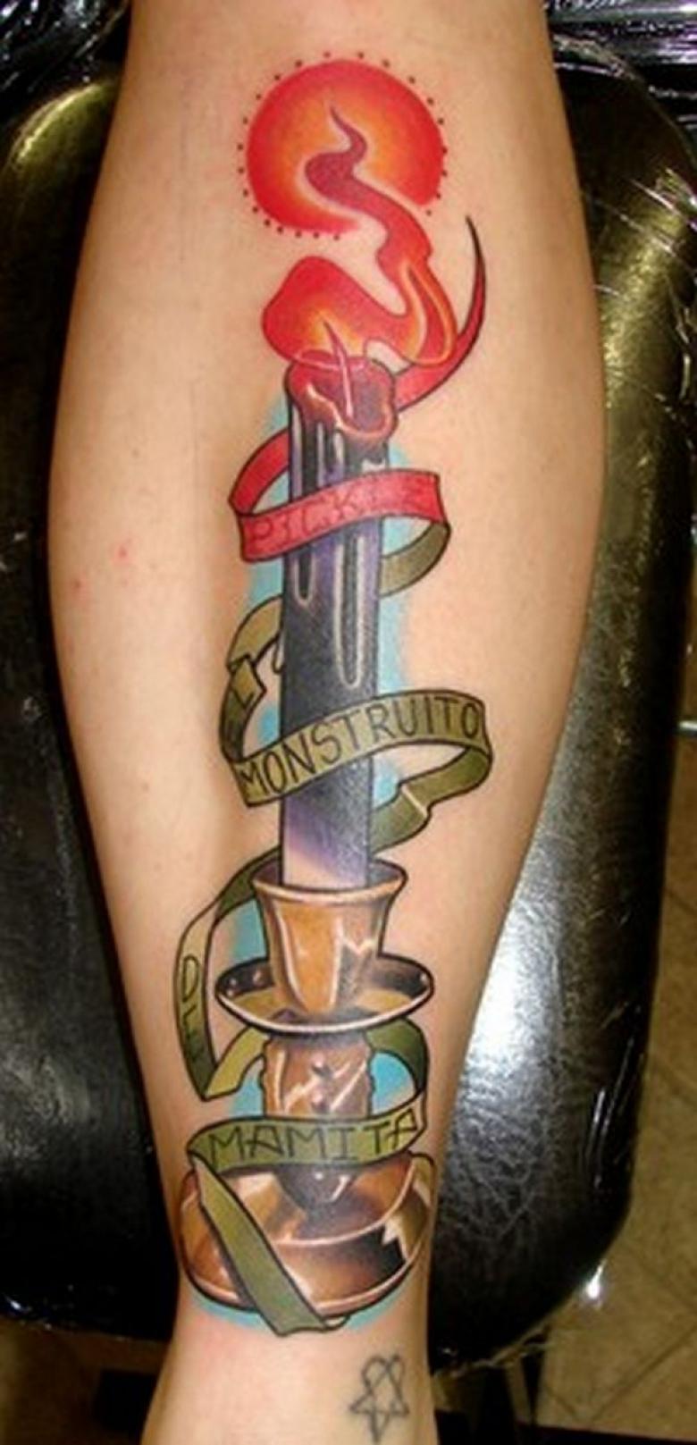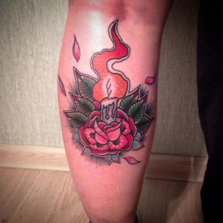 - Romantiek en subtiliteit van de waarneming, voor de romantische natuur wordt vaak de afbeelding van een kaars gecombineerd met bloemen of andere bloemmotieven, en de betekenis van de tatoeage wordt aangevuld met felle kleuren en kleurschakeringen.