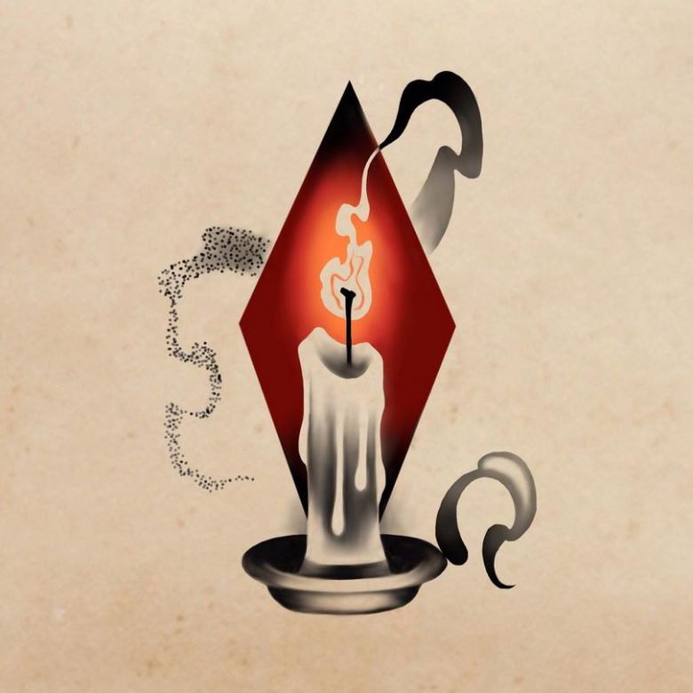 - het teken van verdriet, om het uit te drukken meestal gebruikt vervagend licht of verbrande pit, het kan de gebeurtenis ervaren betekenen, het verlies van een dierbare, in combinatie met de datum is het een herinnering aan een bepaalde dag