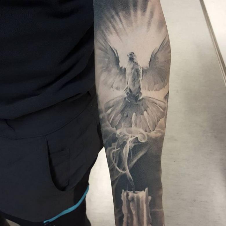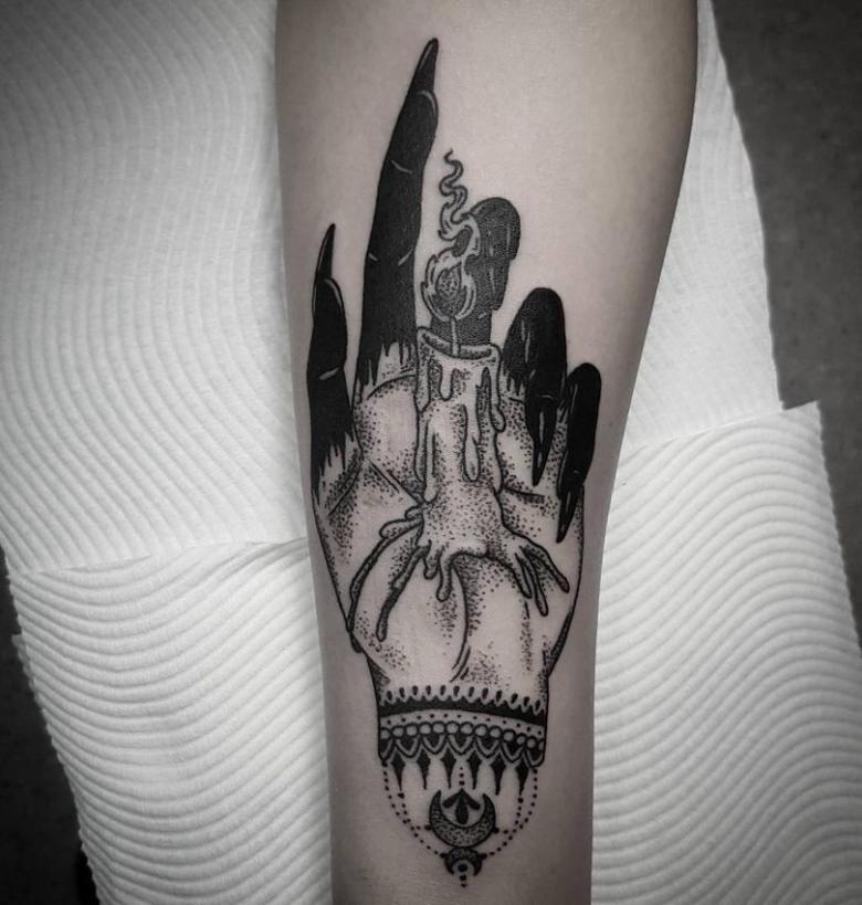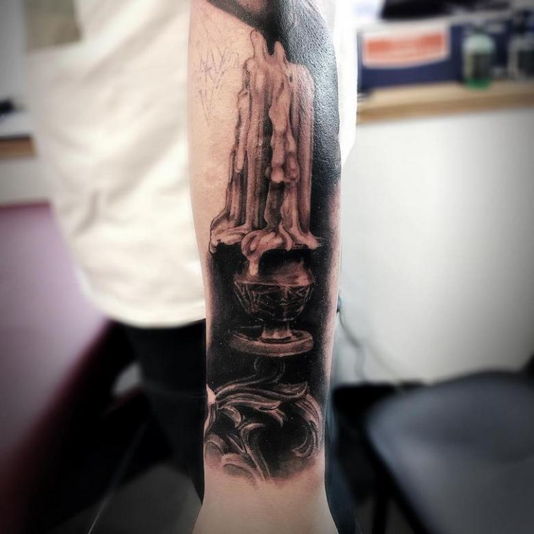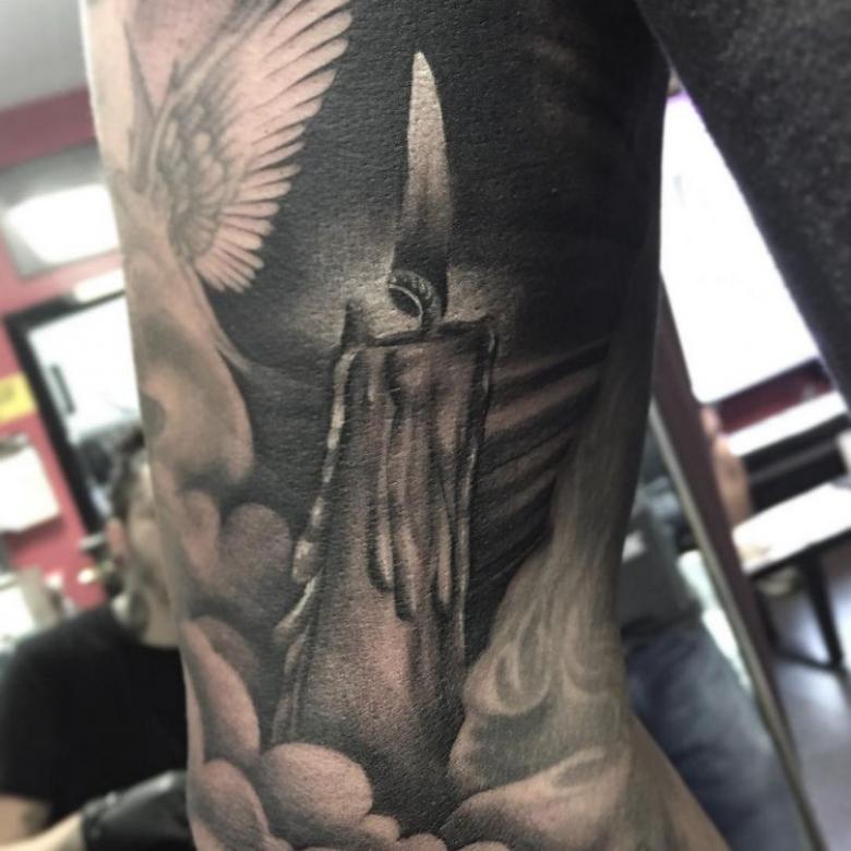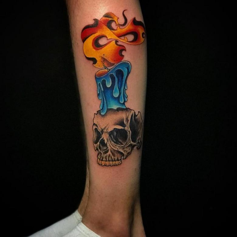 - De Slavische mythologie interpreteert het beeld van een brandende kaars in de tatoeage als een heilig vuur, een krachtig en wonderbaarlijk element. Een brandende kaars is een symbool van zuivering van kwade krachten, bescherming tegen magische invloed op het lot, eerbied voor de machtige krachten van de natuur en erkenning van de onvolmaaktheid van de menselijke natuur;