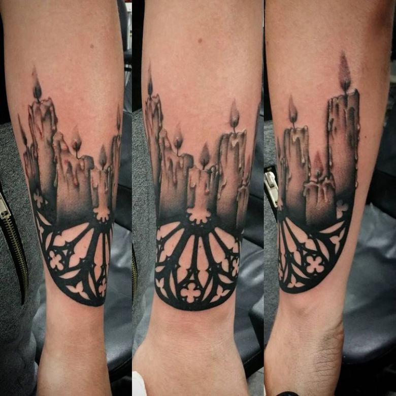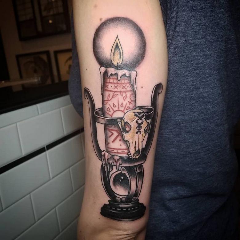 Elke gekozen semantische inhoud van een lichaamsbeeld kan een mooie kaarsentekening op het lichaam belichamen. Als je een interessant en origineel ontwerp en extra elementen kiest, wordt deze tatoeage exclusief en trekt hij de ogen van anderen aan.