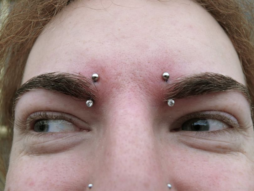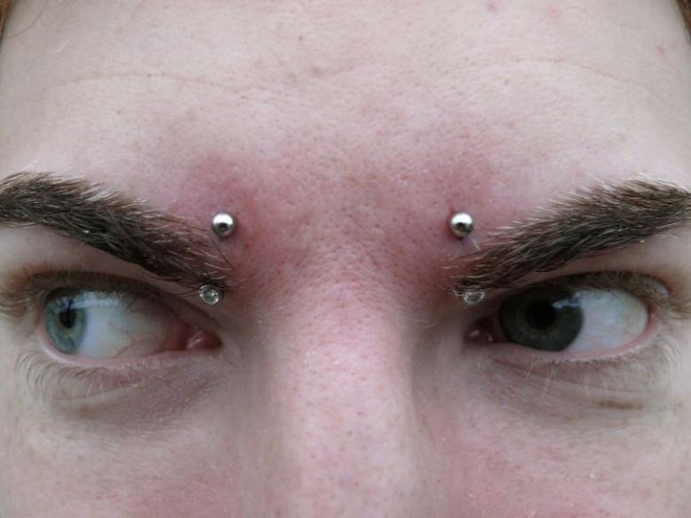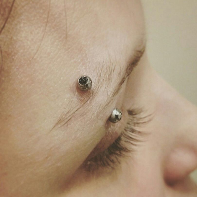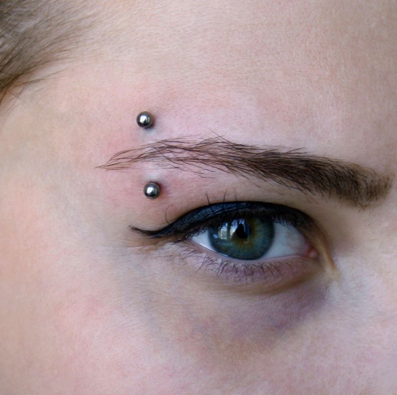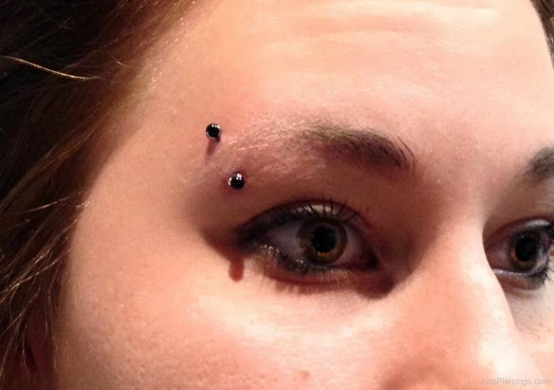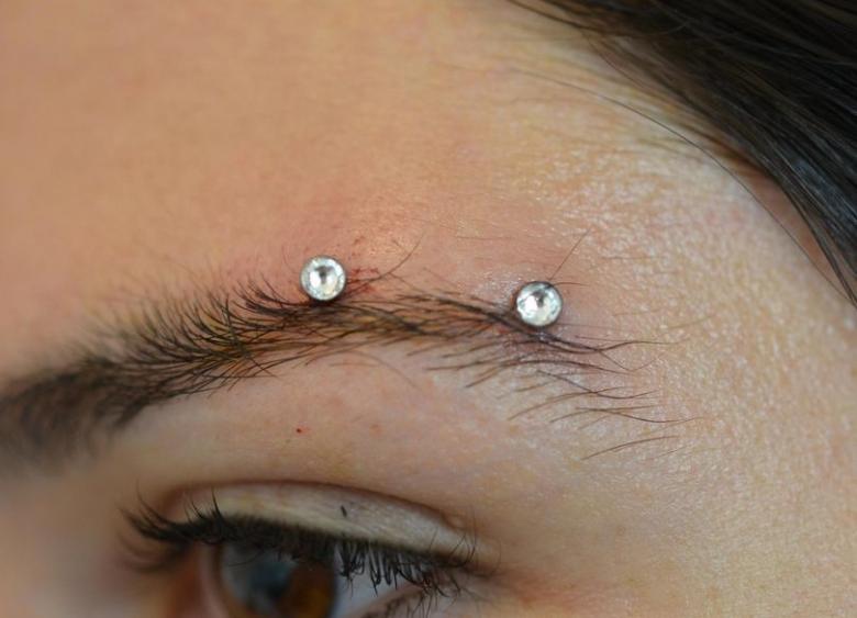 - Perçage vertical. Il s'agit de saisir une zone de peau autour de l'arcade sourcilière, qui est percée de haut en bas. On y place généralement une tige avec une décoration sous forme de cristaux, de pointes. Variété relativement peu sûre, il existe un risque important de développer une réaction inflammatoire. Le processus de guérison est plus long que pour les autres variétés de piercing.