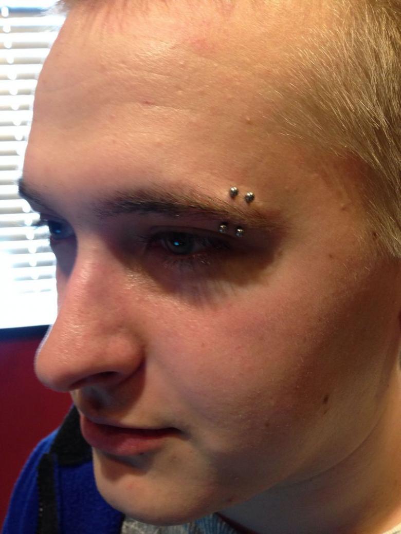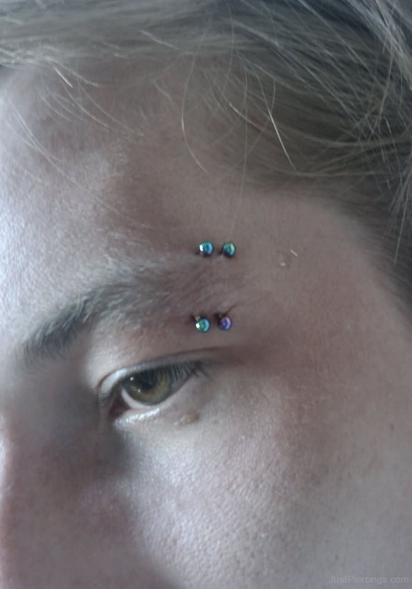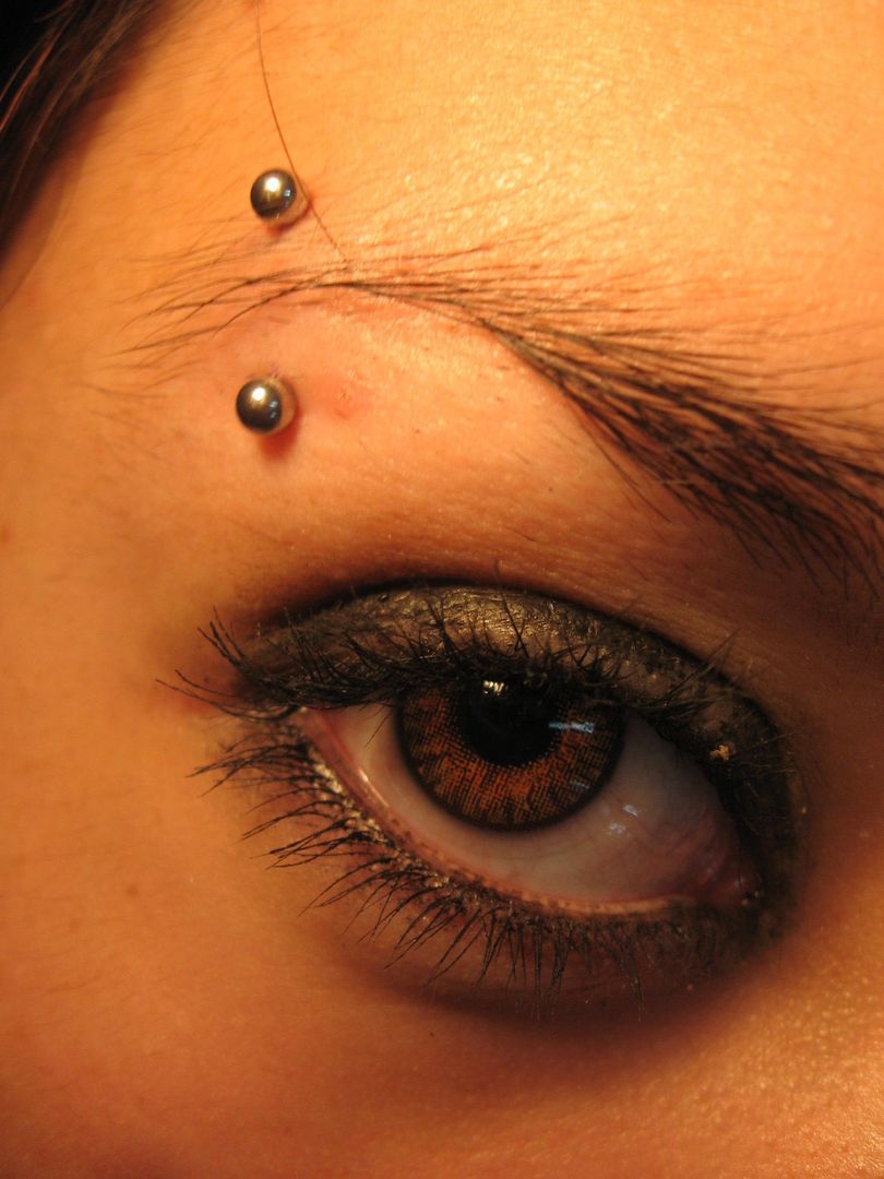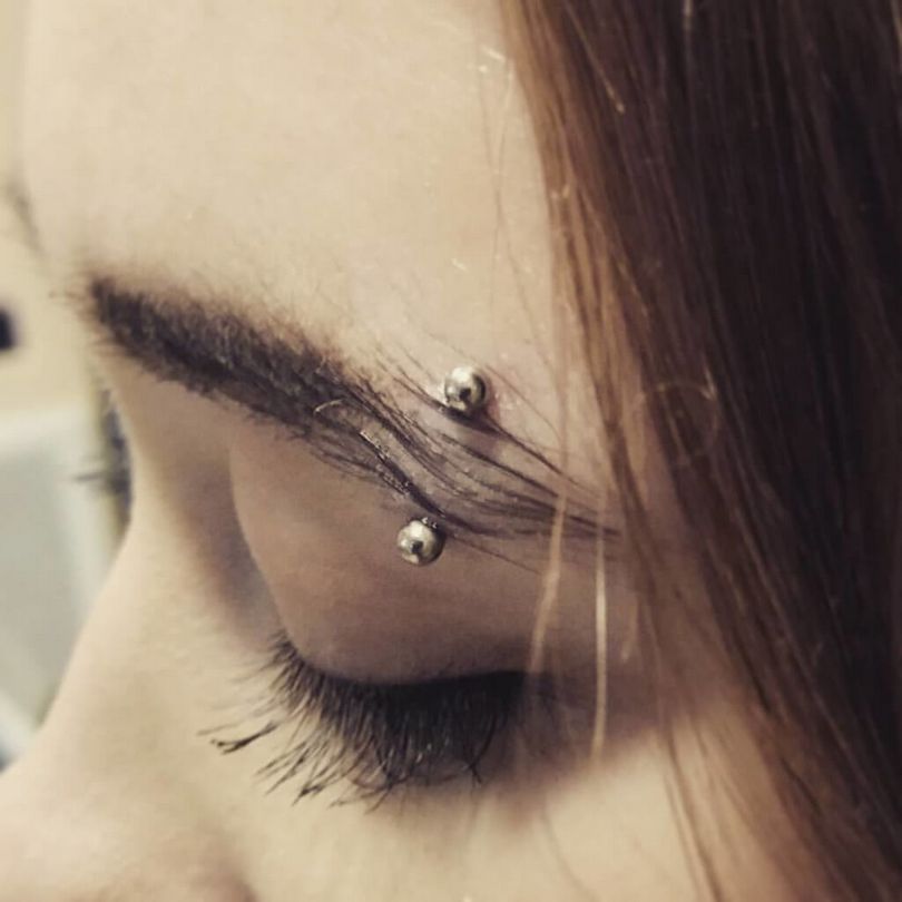 - Perçage vertical. Il s'agit de saisir une zone de peau autour de l'arcade sourcilière, qui est percée de haut en bas. On y place généralement une tige avec une décoration sous forme de cristaux, de pointes. Variété relativement peu sûre, il existe un risque important de développer une réaction inflammatoire. Le processus de guérison est plus long que pour les autres variétés de piercing.