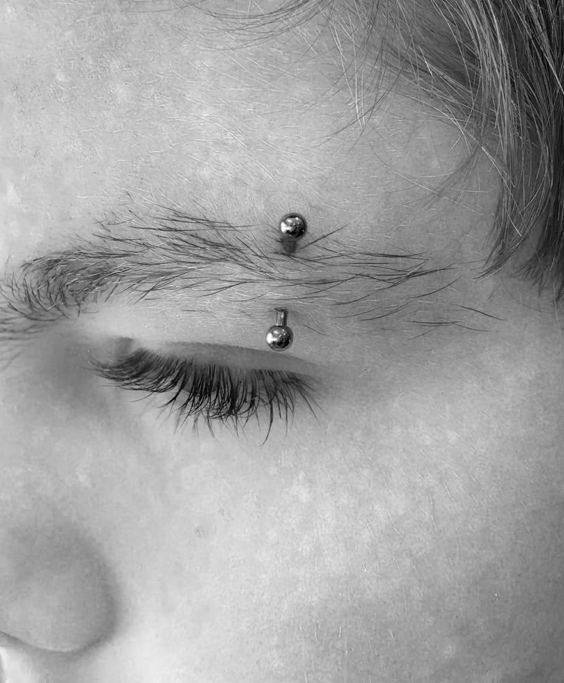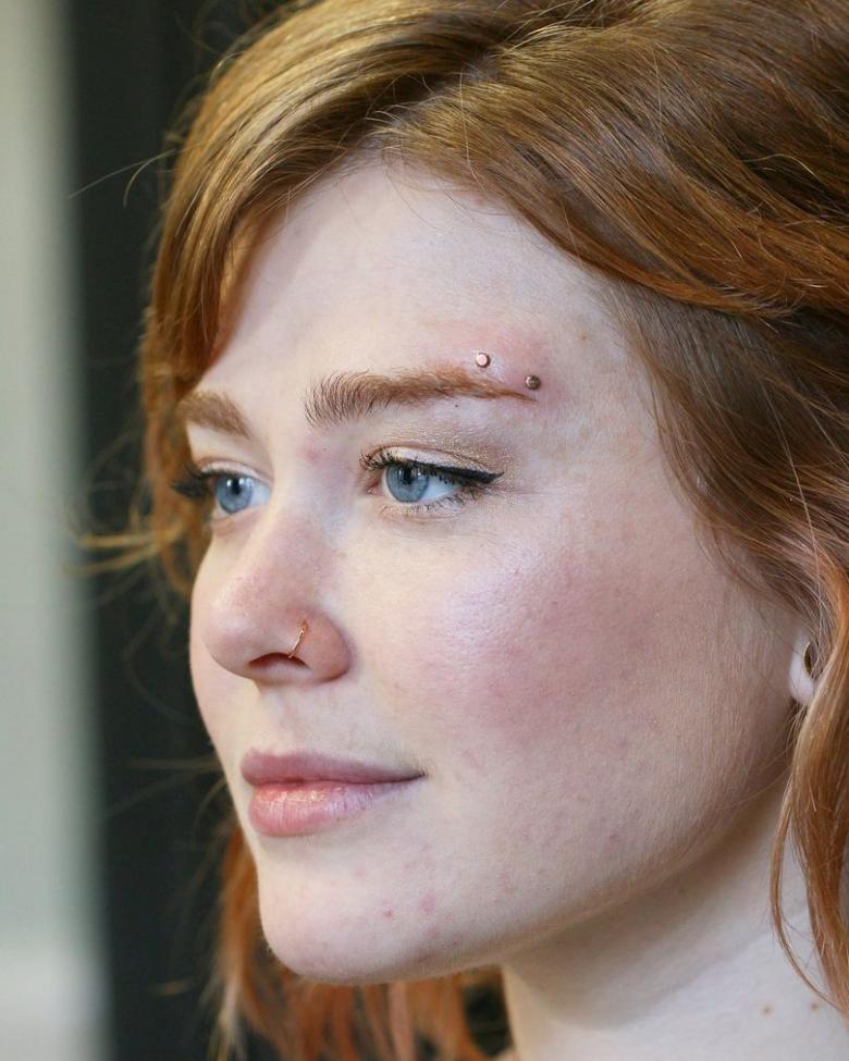 Piercing des sourcils - technique, soins et cicatrisation, bijoux (anneau, boucles d'oreilles, clous), superbes photos