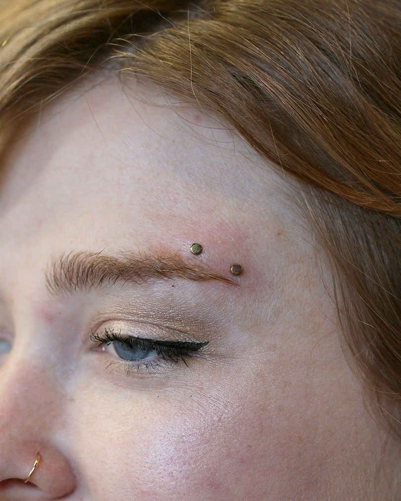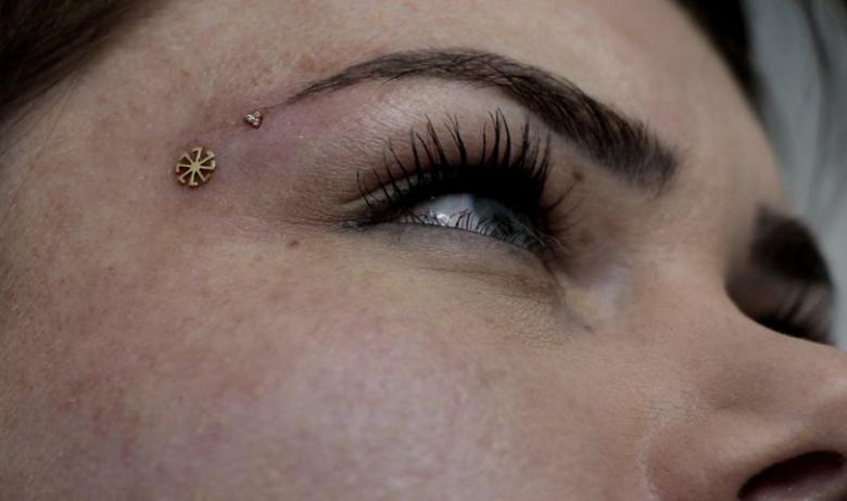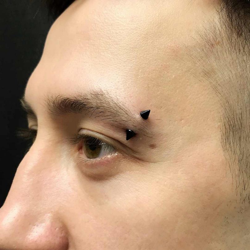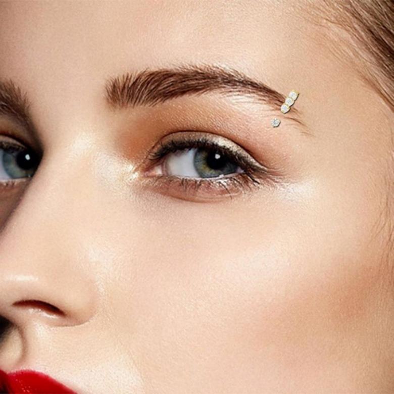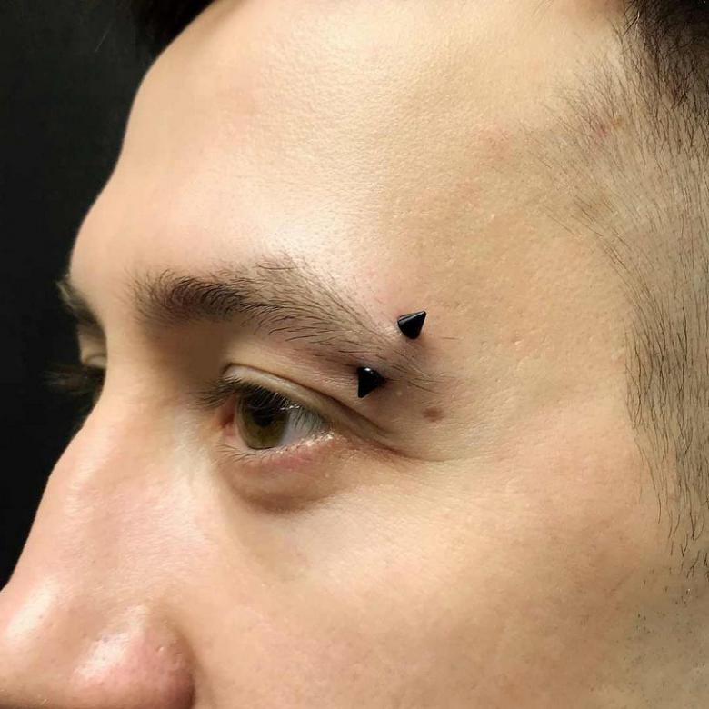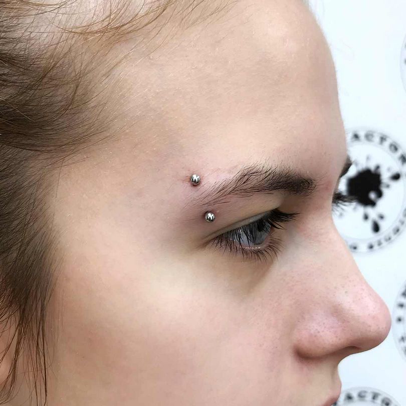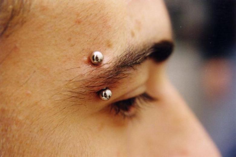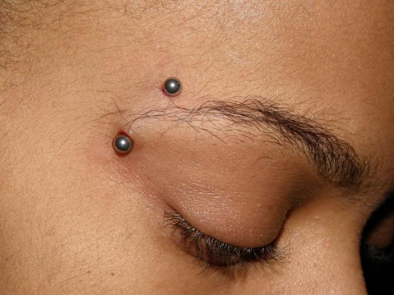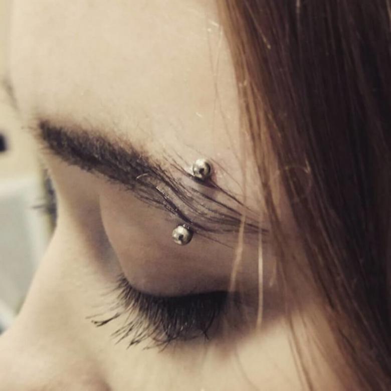 - Anti-sourcil. La version originale du bijou, placée dans la partie supérieure de la pommette. Elle est souvent bilatérale. La procédure de perçage est assez compliquée, c'est pourquoi elle n'est réalisée que par des artisans professionnels.