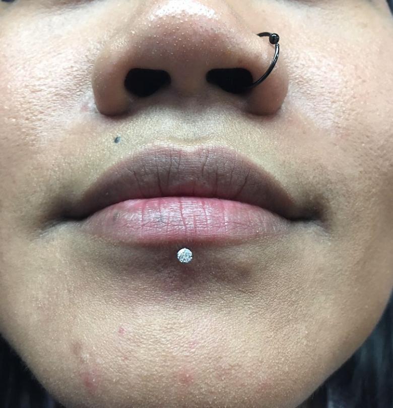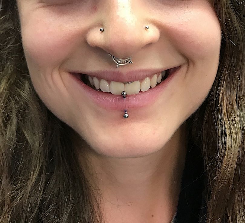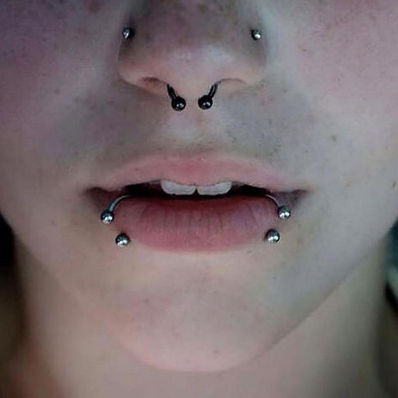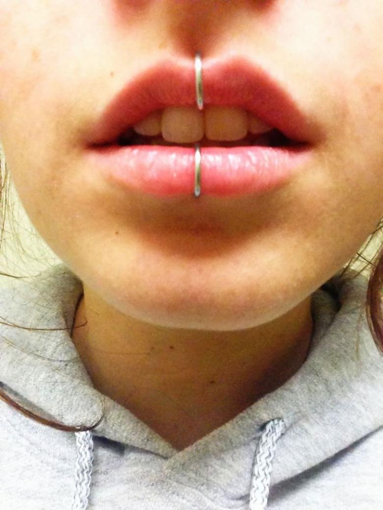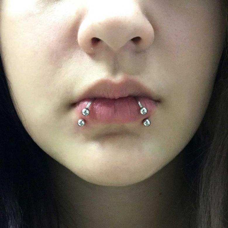 - Ashley. Techniquement, cette variante de piercing est similaire au labret horizontal, mais plus compliquée ; le piercing est réalisé strictement au milieu de la lèvre. Une option spectaculaire pour le piercing, mais associée à un risque élevé de complications et à l'apparition d'une cicatrice inesthétique.
