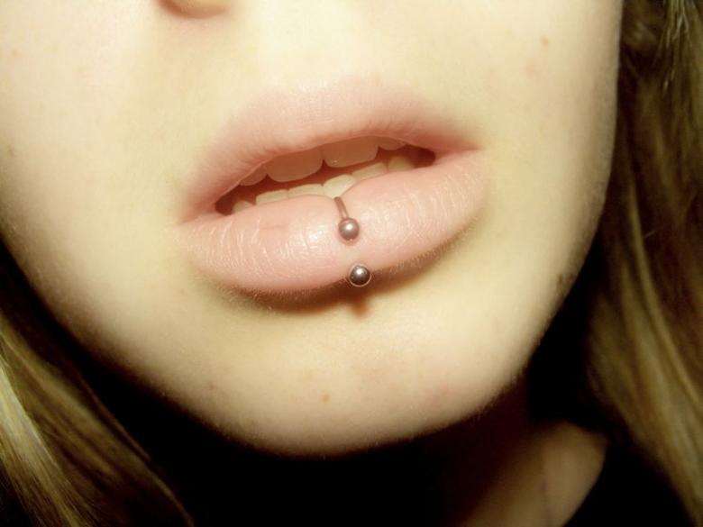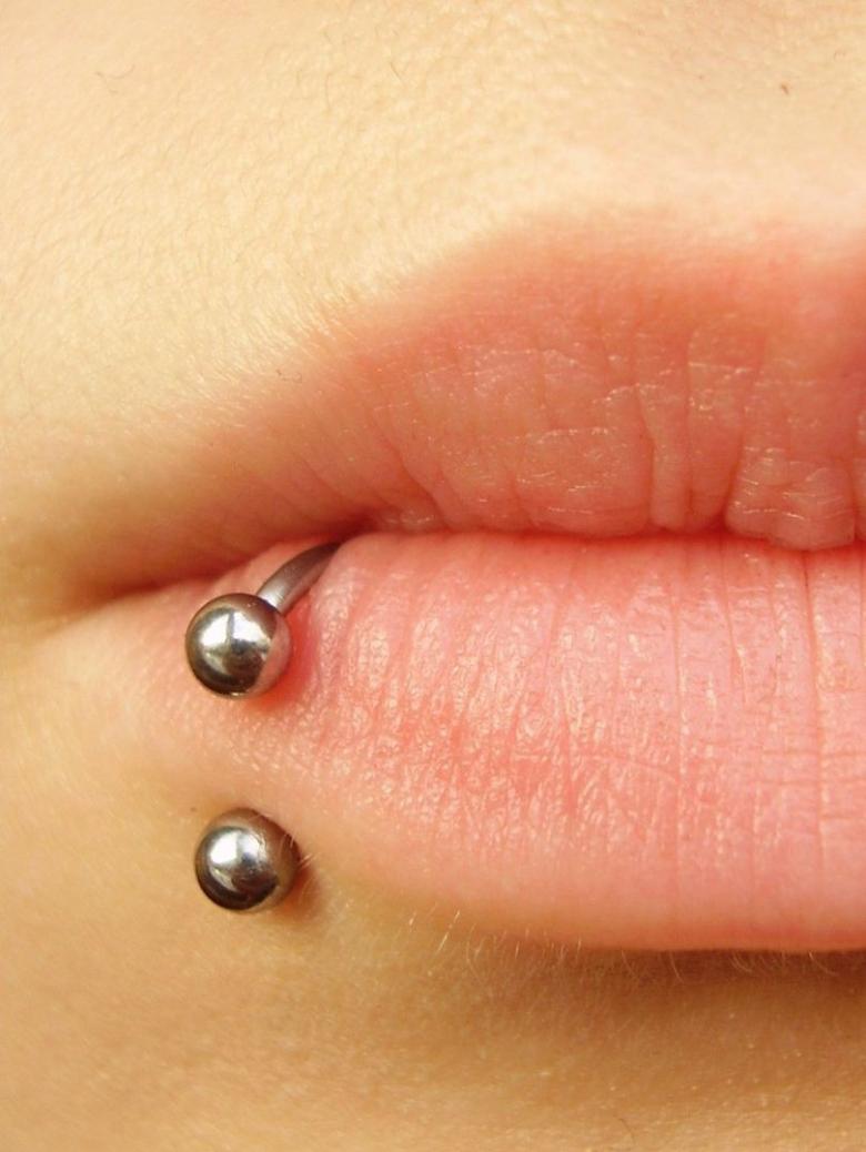 - Labret vertical. Le piercing s'effectue du bord inférieur de la lèvre jusqu'au centre de la lèvre. Le centrage précis du bijou est important et il doit être positionné de manière strictement verticale.