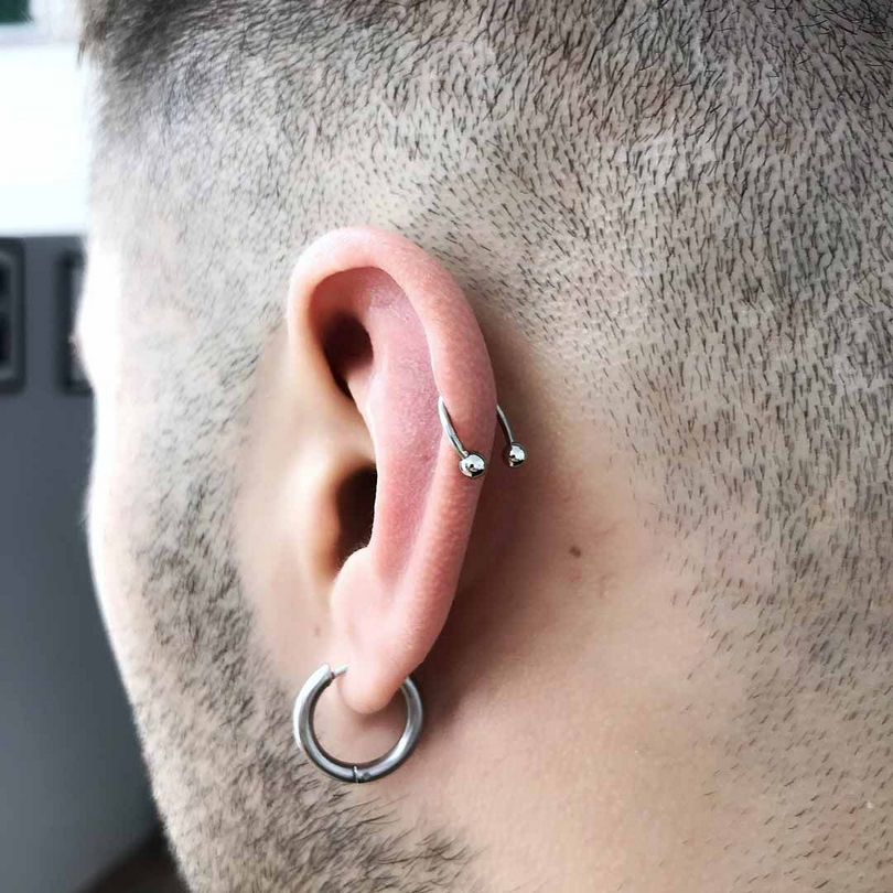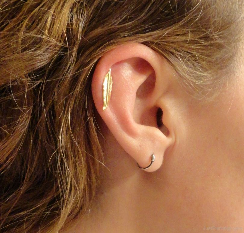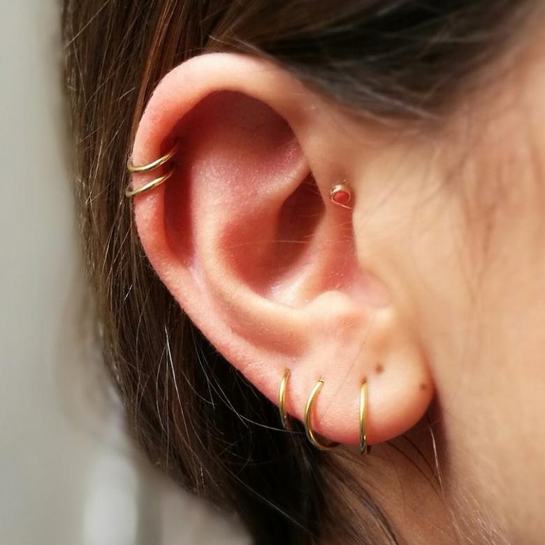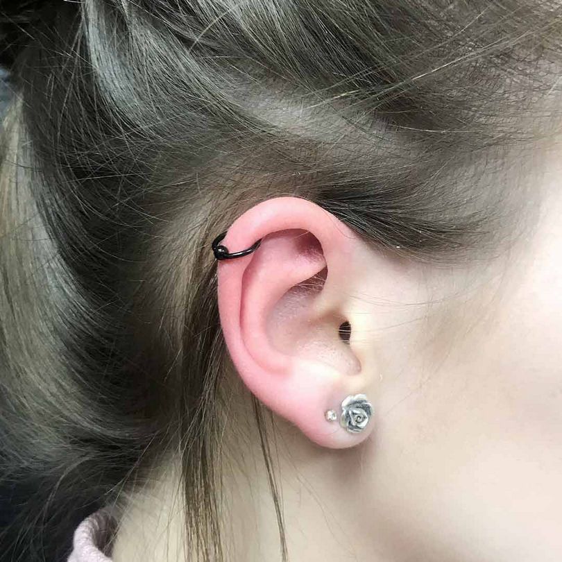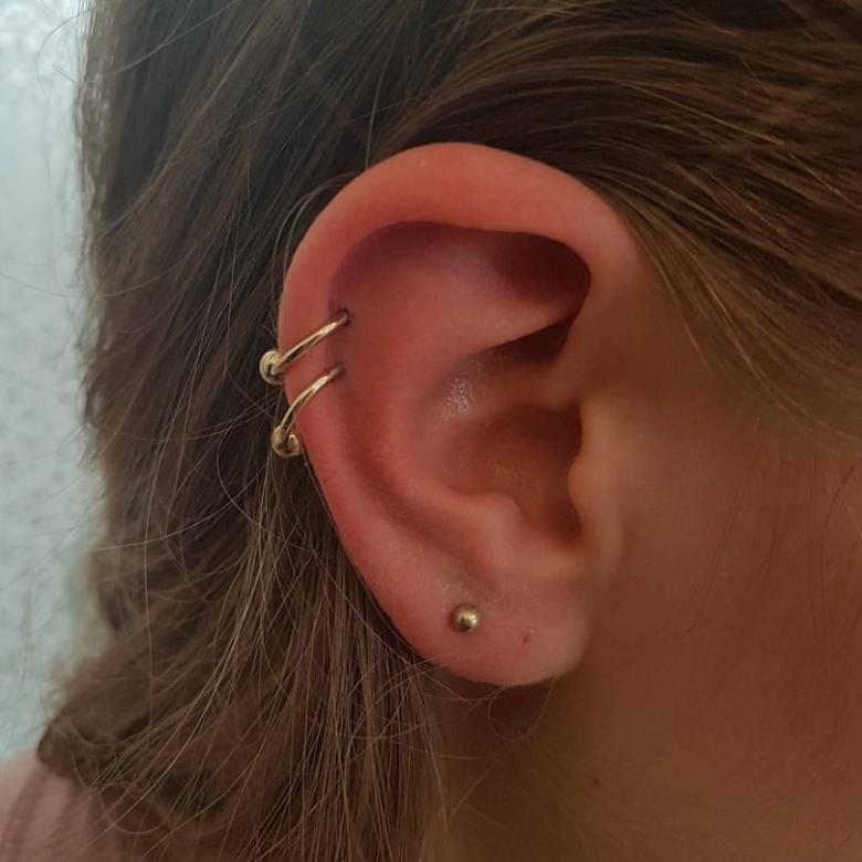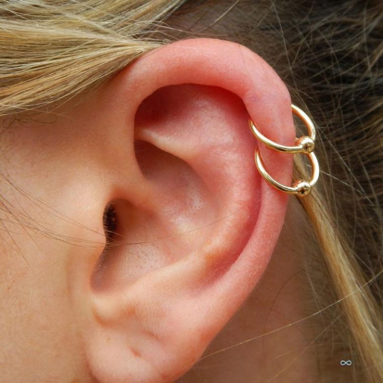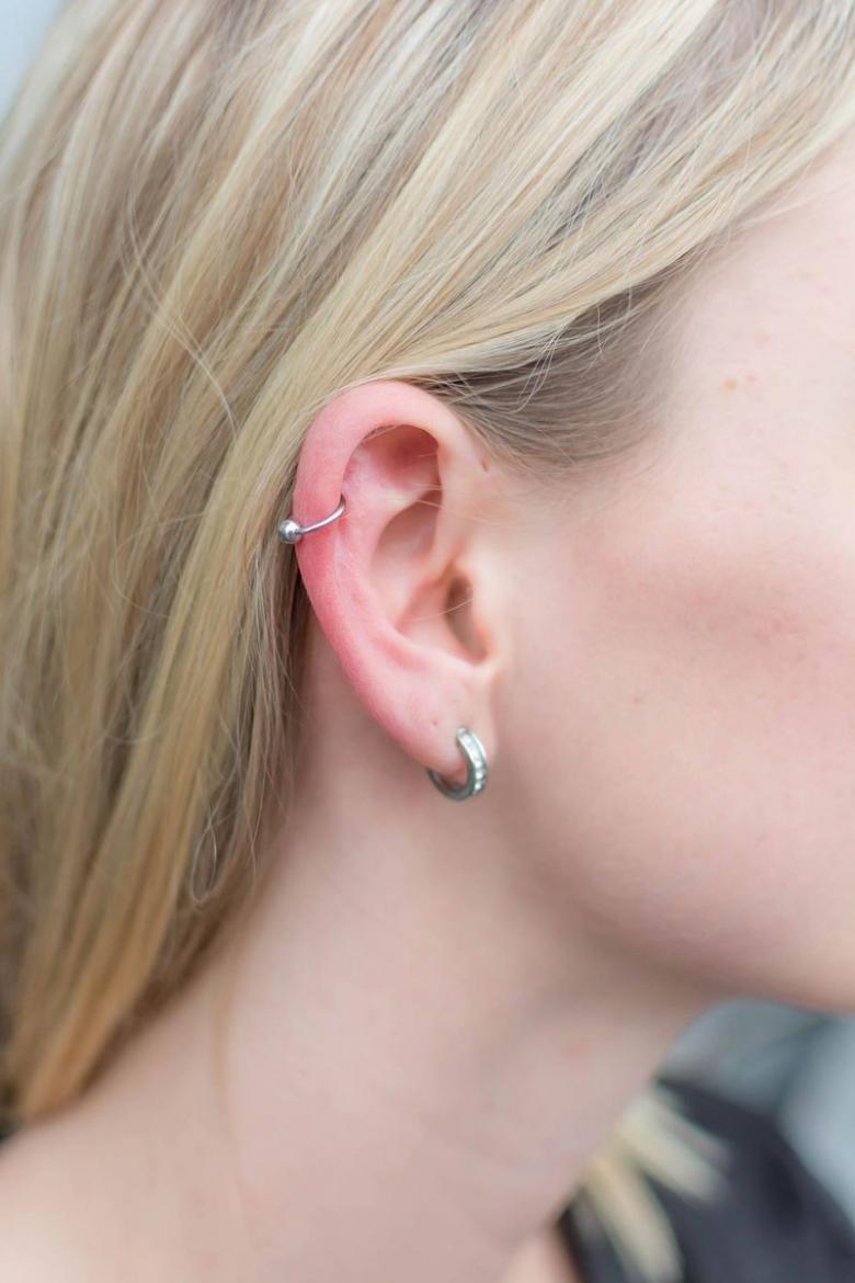 Piercing Helix - technique, procédure douloureuse, comment choisir bagues, boucles d'oreilles et autres bijoux, superbes photos