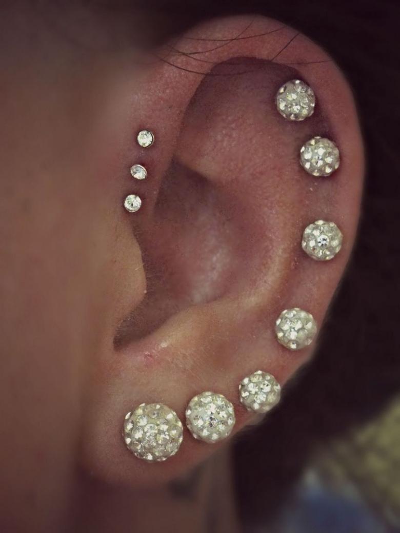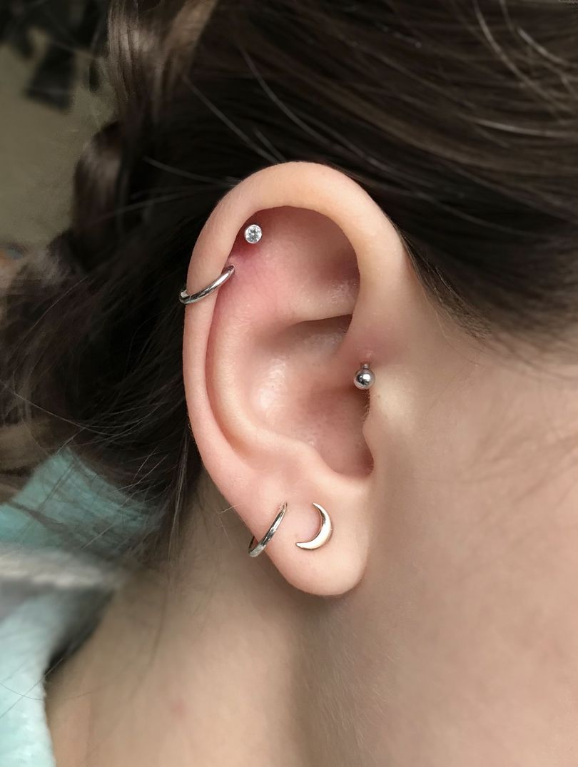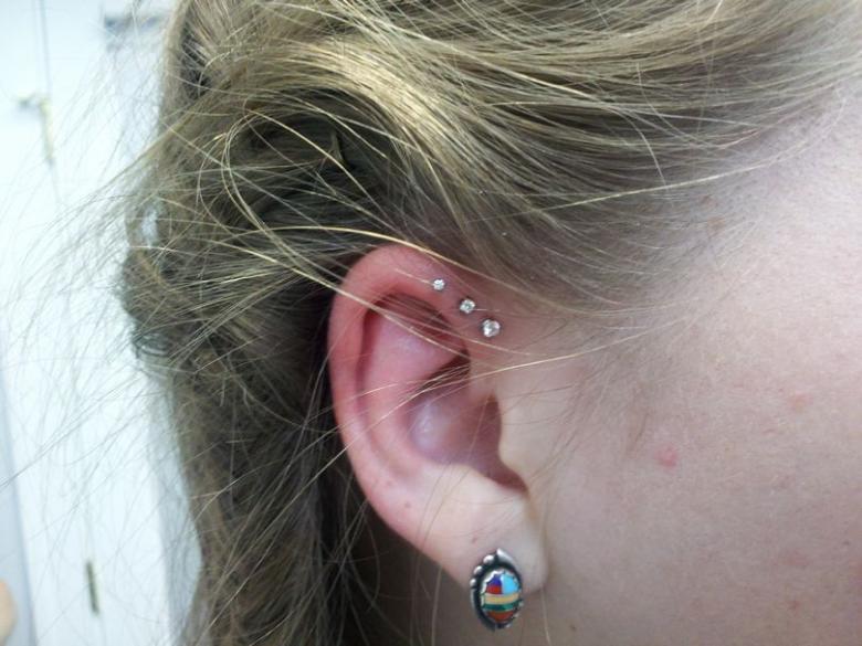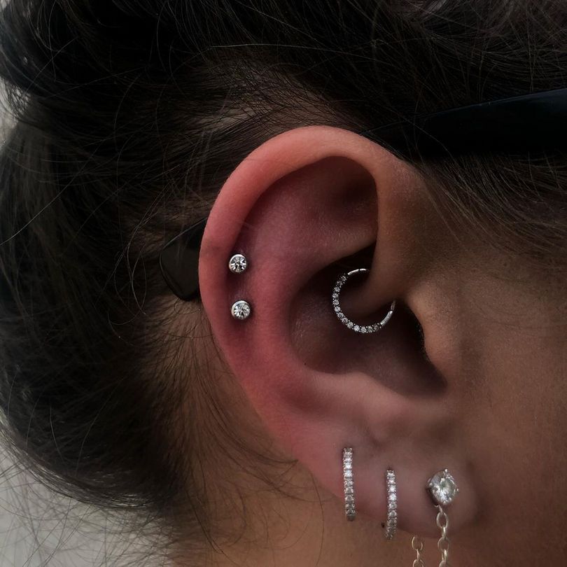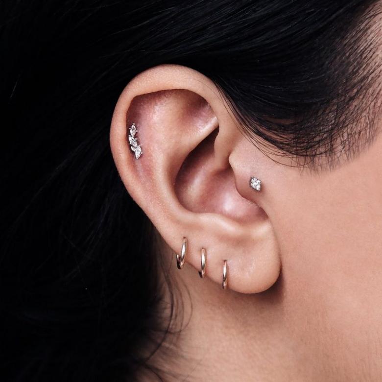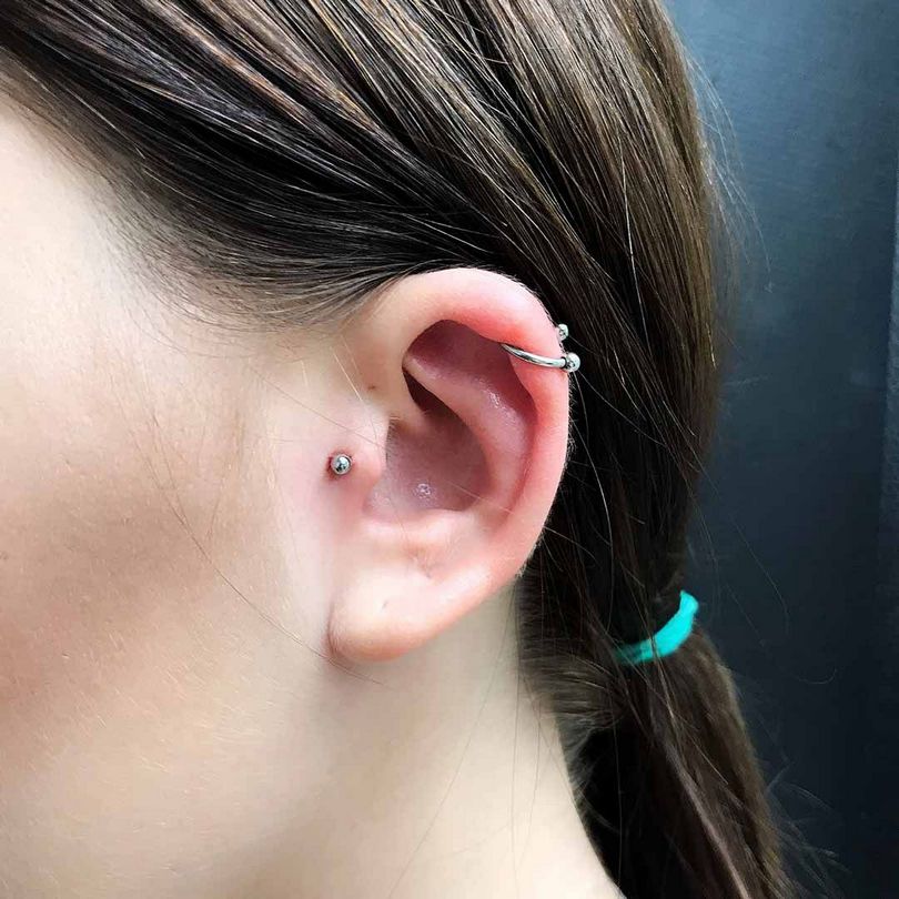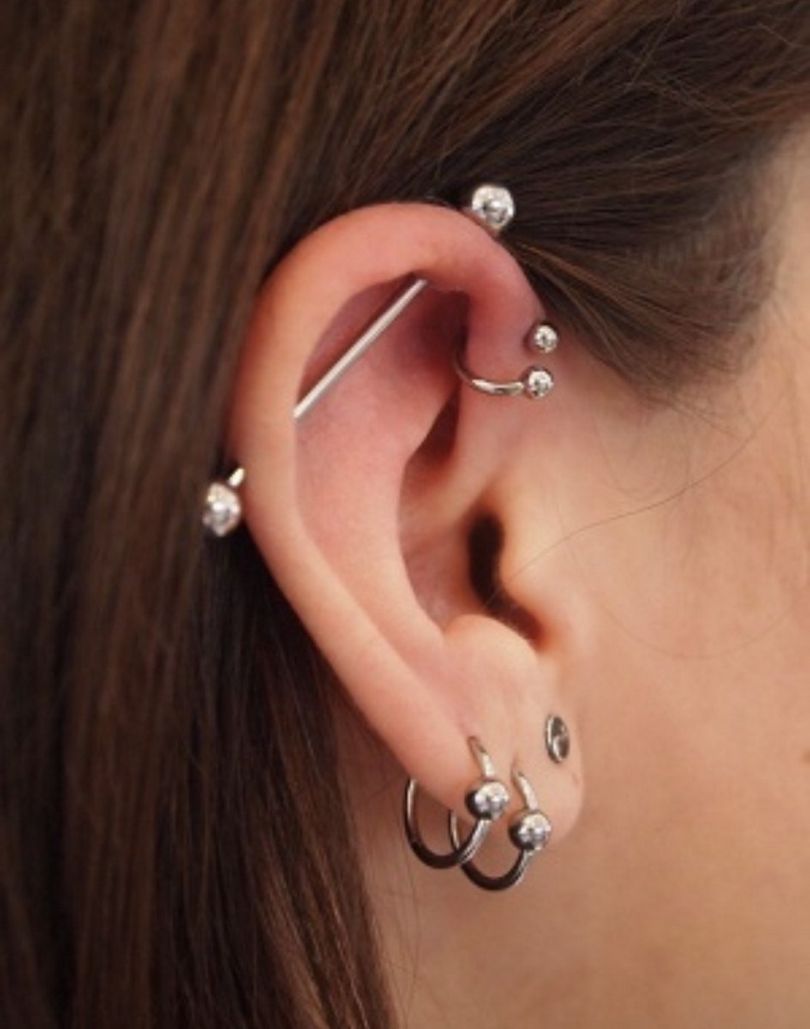 Piercing Helix - technique, procédure douloureuse, comment choisir bagues, boucles d'oreilles et autres bijoux, superbes photos