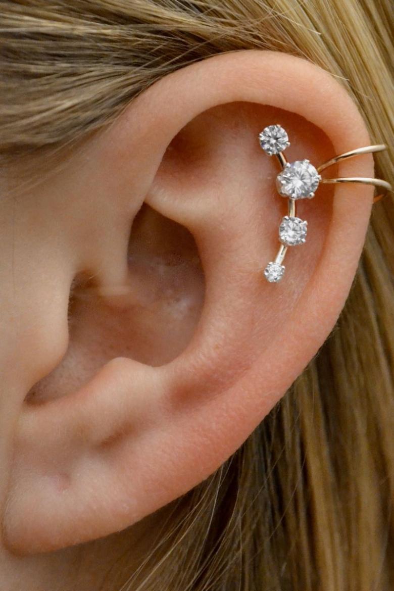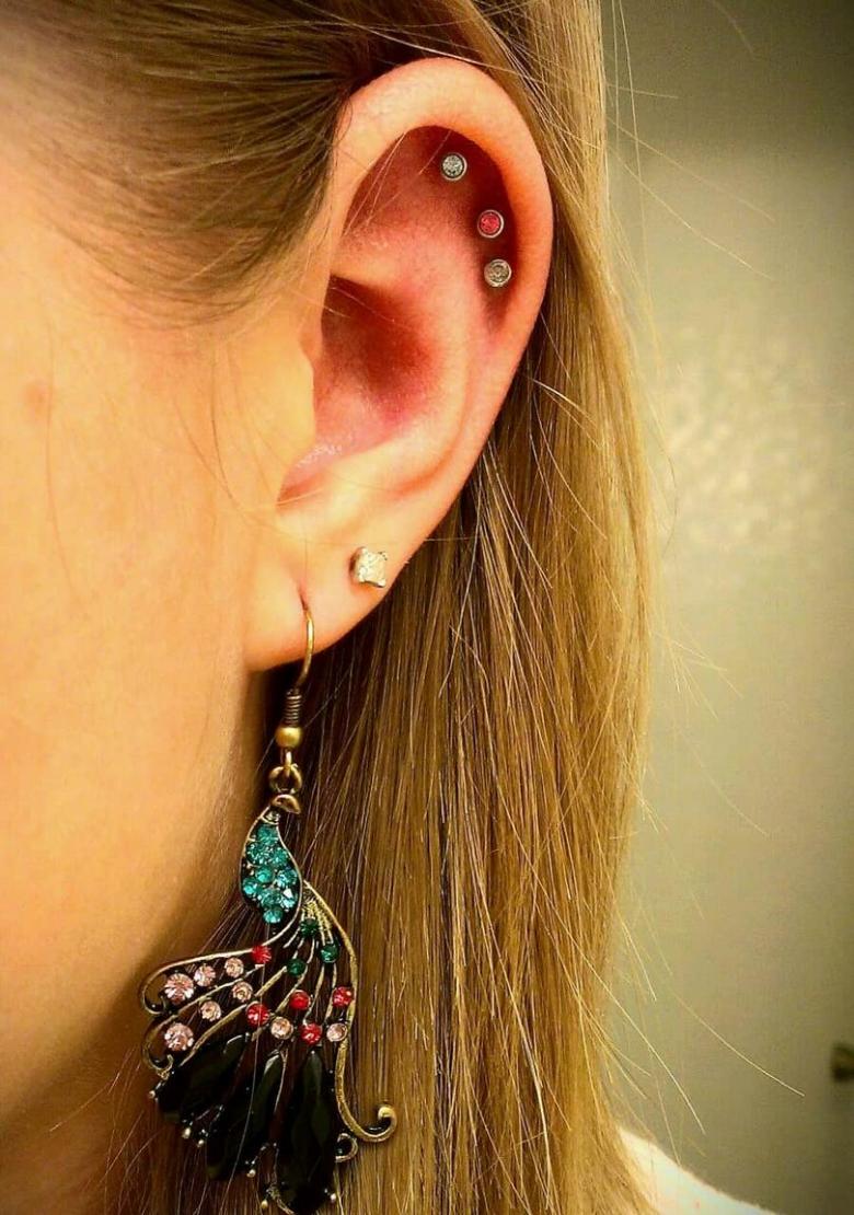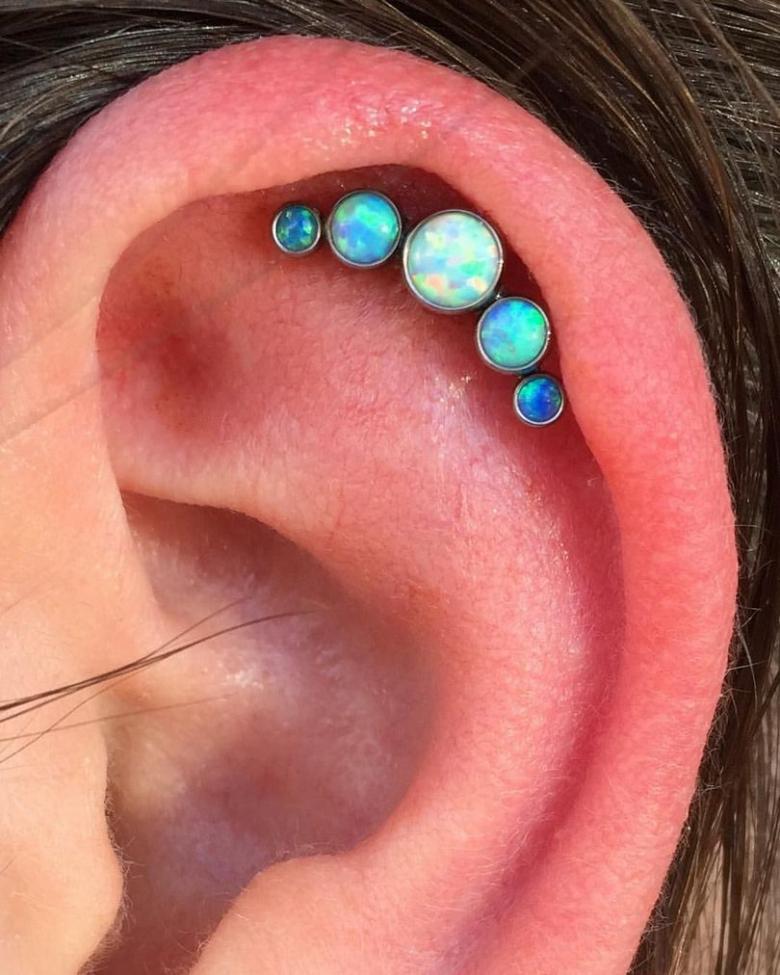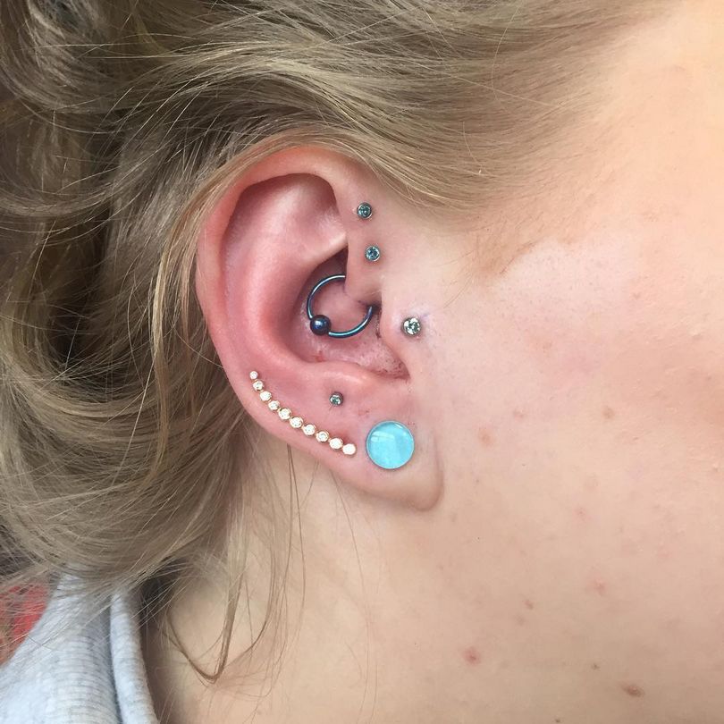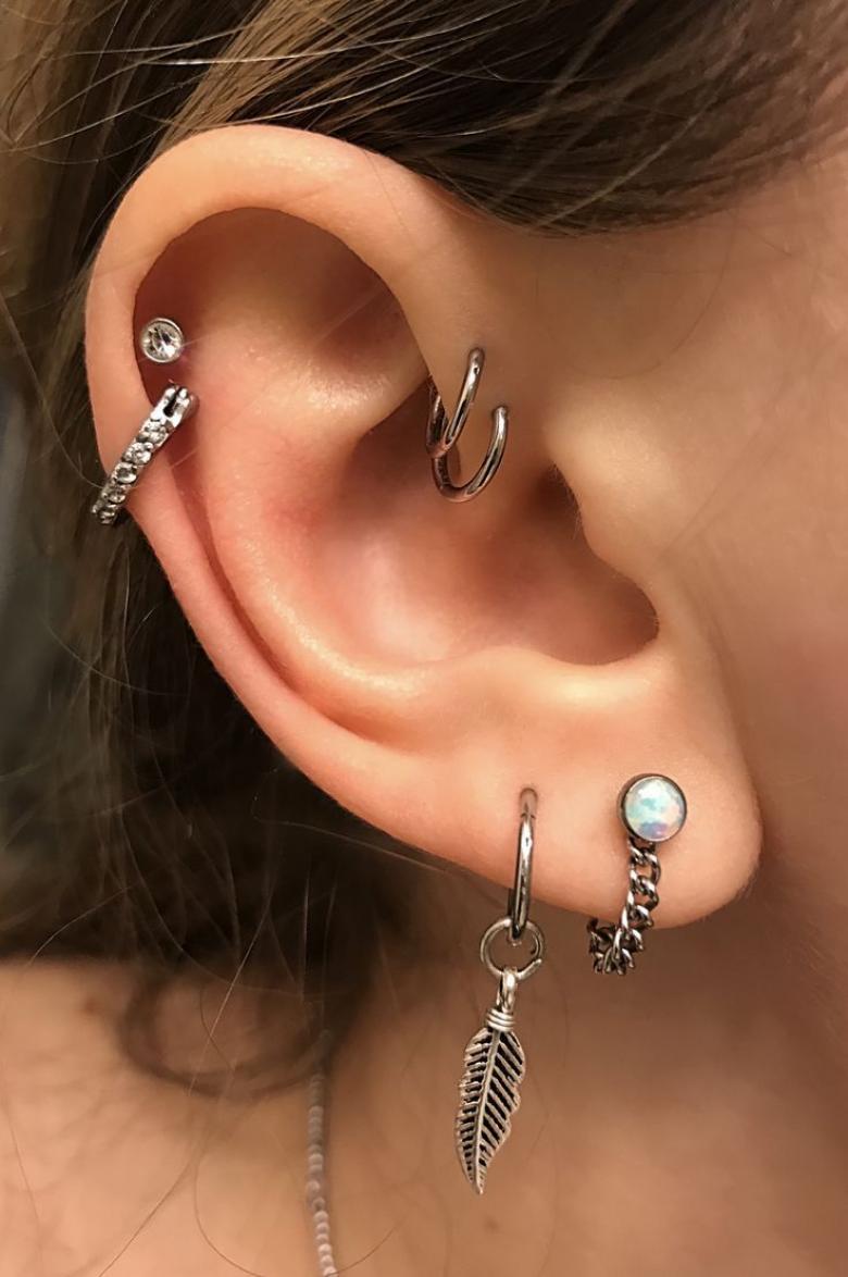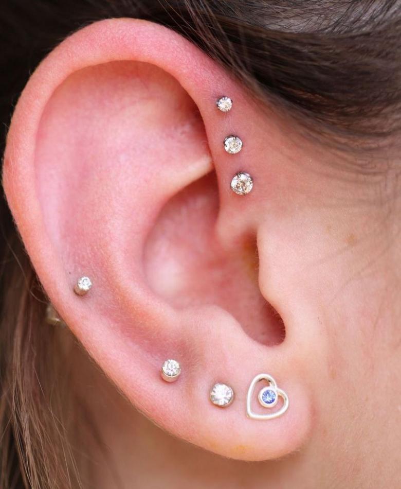 Piercing Helix - technique, procédure douloureuse, comment choisir bagues, boucles d'oreilles et autres bijoux, superbes photos