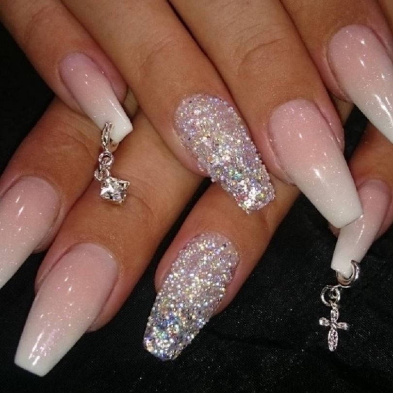 Pour une manucure délicate, il est préférable d'opter pour des options discrètes. Les cristaux transparents ou multicolores peuvent rehausser l'éclat de toutes sortes de revêtements avec des effets pailletés ou métalliques.