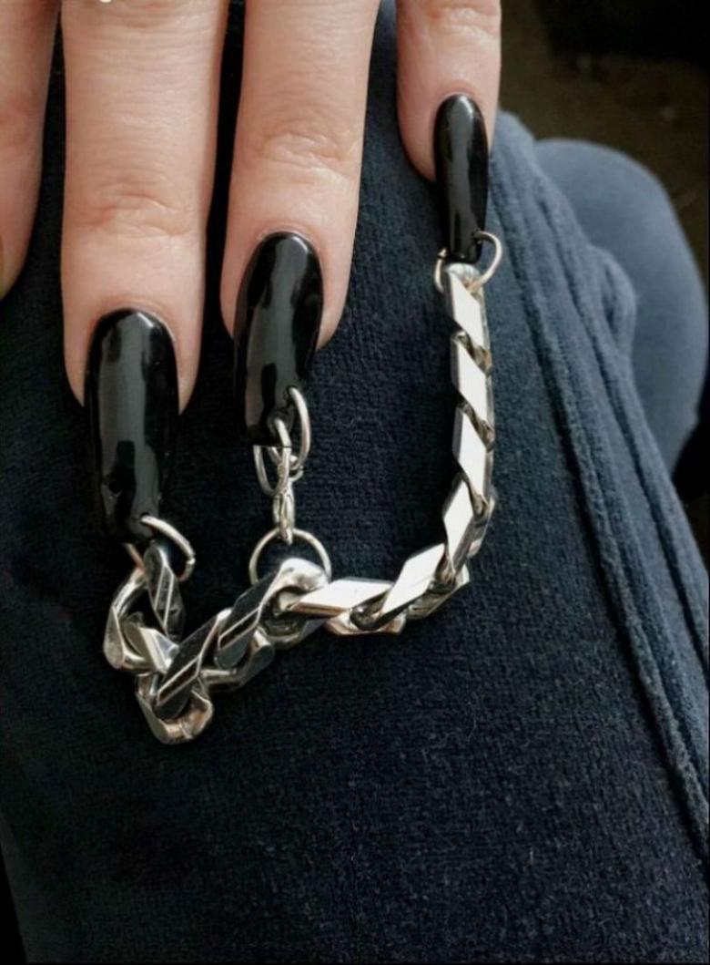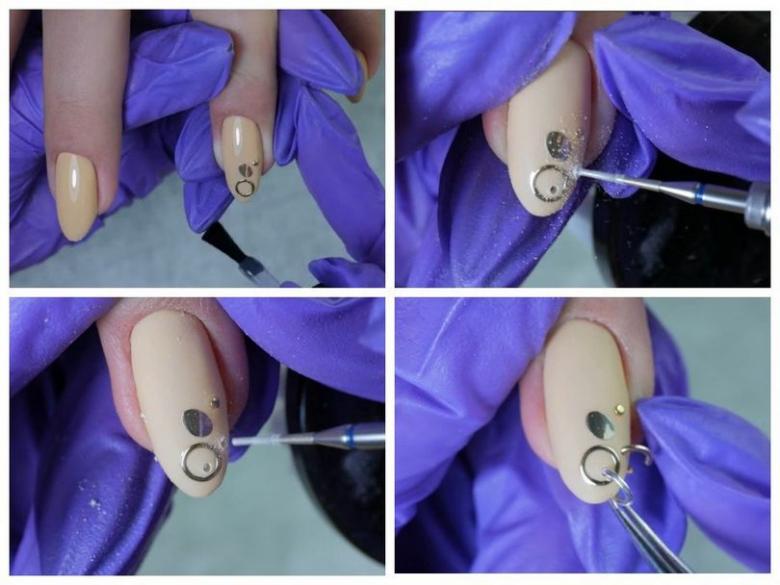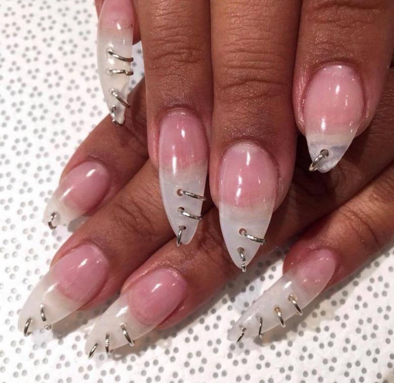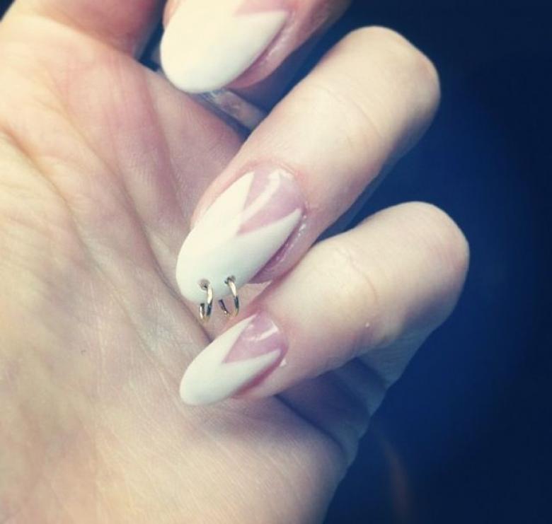 L'opération est effectuée presque sur le bord de l'ongle, de sorte que la décoration soit plus visible et ait l'air aussi avantageuse que possible. Idéalement, le piercing est fait à une longueur moyenne. L'effet le plus important peut être obtenu sur des ongles plus longs. Cela donne à l'image un style distinctif. Les ongles courts ne conviennent pas au perçage.
