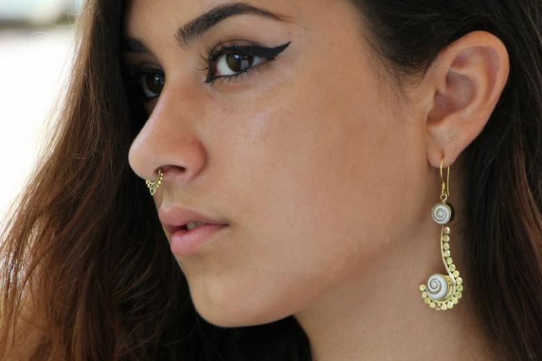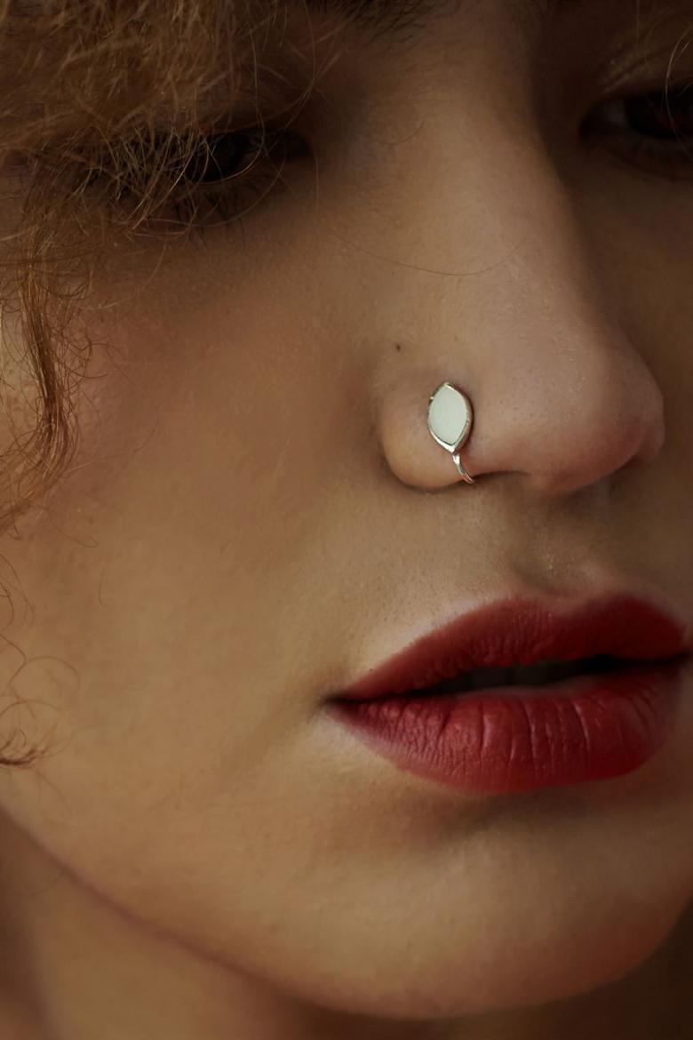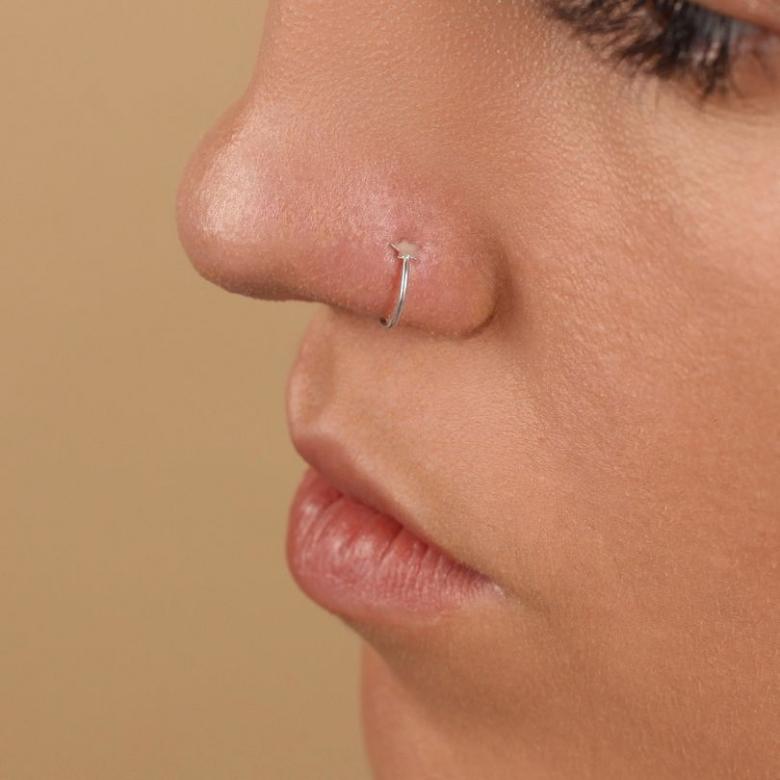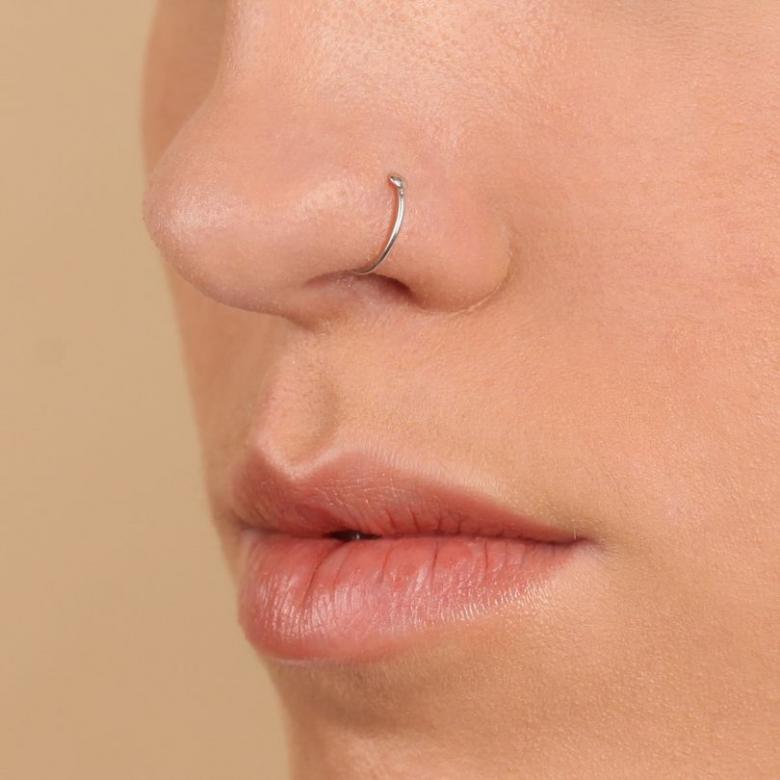 - Un escargot se compose d'un bouchon (placé sur l'aile du nez), d'une tige - dans le canal lui-même et d'un coude qui se trouve dans la narine et empêche la boucle de s'envoler. Il est assez difficile à mettre ou à enlever quand on n'y est pas habitué, mais il est sûr et confortable. Après la cicatrisation de la boucle d'oreille, vous pouvez choisir un strass ou un chapeau façonné pour ajouter une touche de flair. Idéal pour une première décoration juste après le piercing.