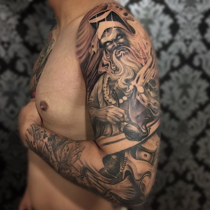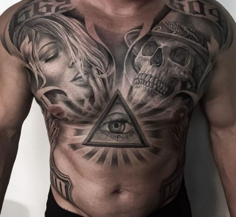 Les tatouages populaires pour hommes comprennent également différents éléments et signes qui constituent un dessin autonome ou font partie d'une image plus complexe. Pour les images complexes, le maître fait des croquis :
