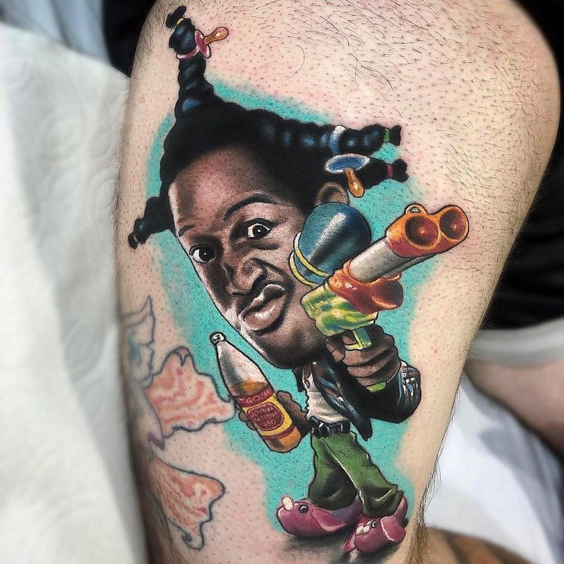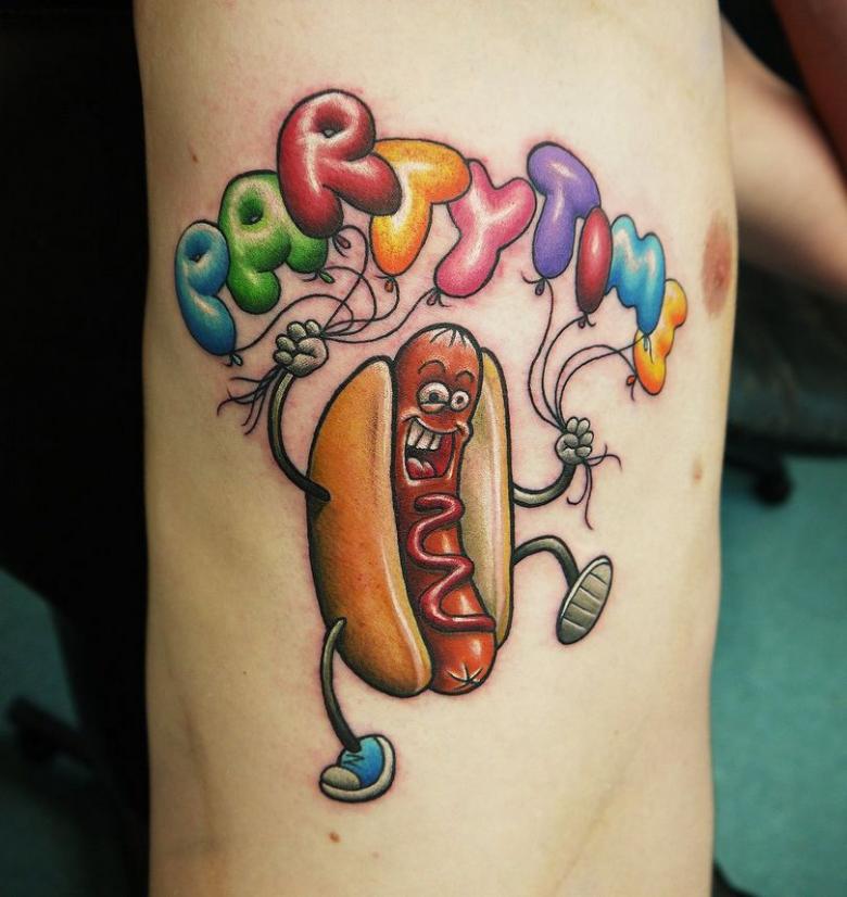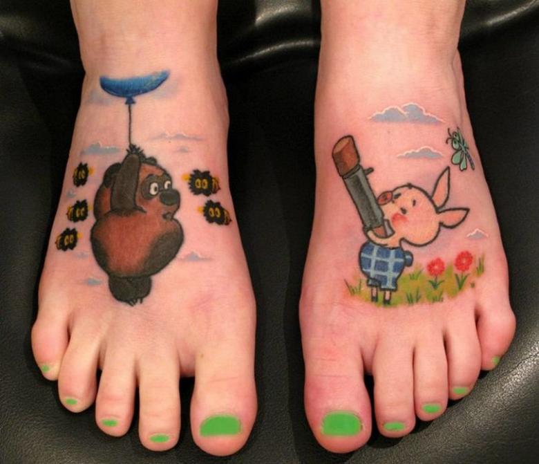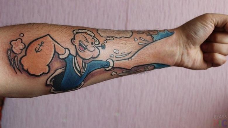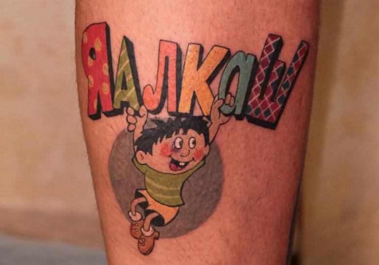 Les tatouages amusants sont clairement une priorité masculine. Ils sculptent souvent sur le corps des personnages de dessins animés aux couleurs vives, des inscriptions ou des dictons, des situations anecdotiques.