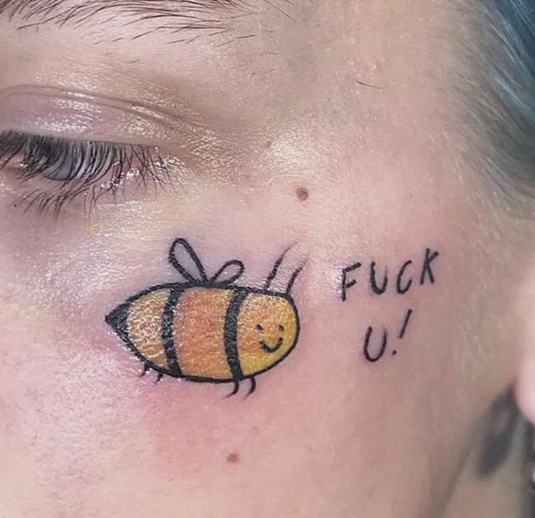 Comme d'habitude, ils sont appliqués avec passion et beaucoup de ces tatouages ne veulent rien dire. Parfois, il peut s'agir de codes-barres, de mèmes et de hashtags.