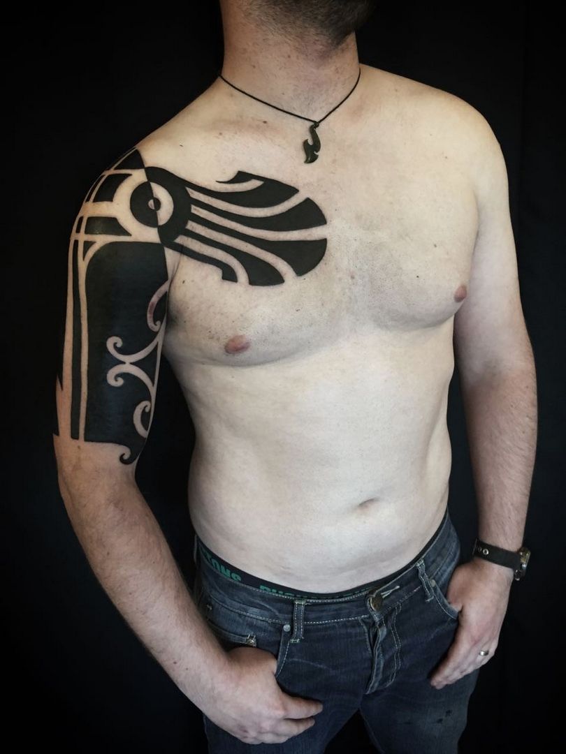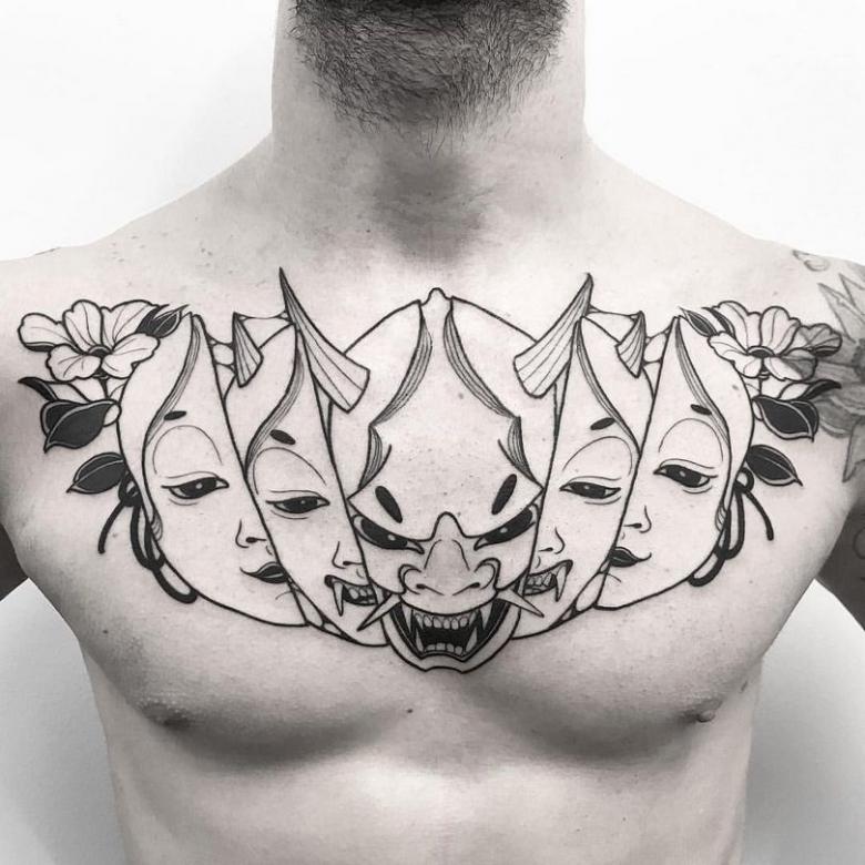 Les grands tatouages sont traditionnellement placés sur de grandes parties du corps : dos, côtés, poitrine, hanches.