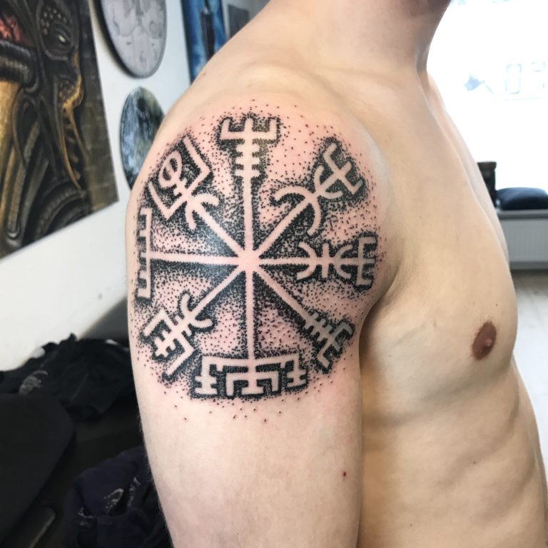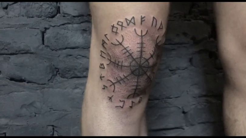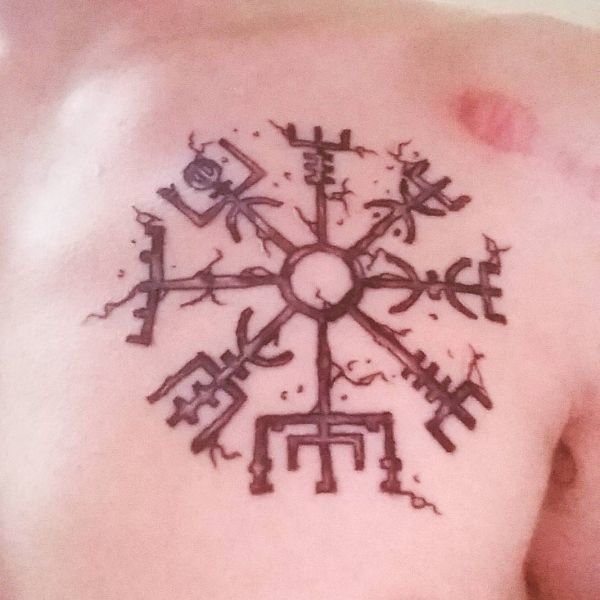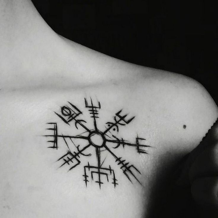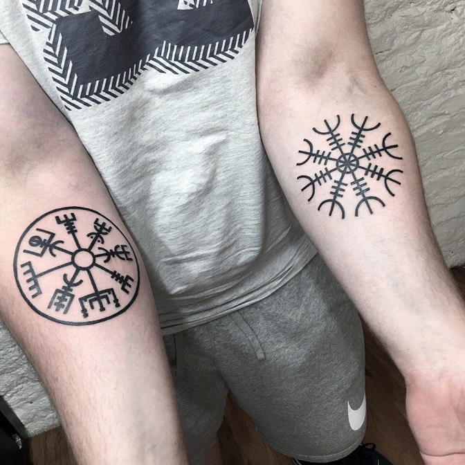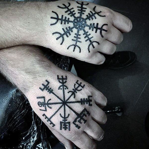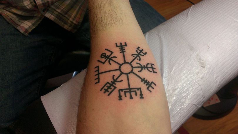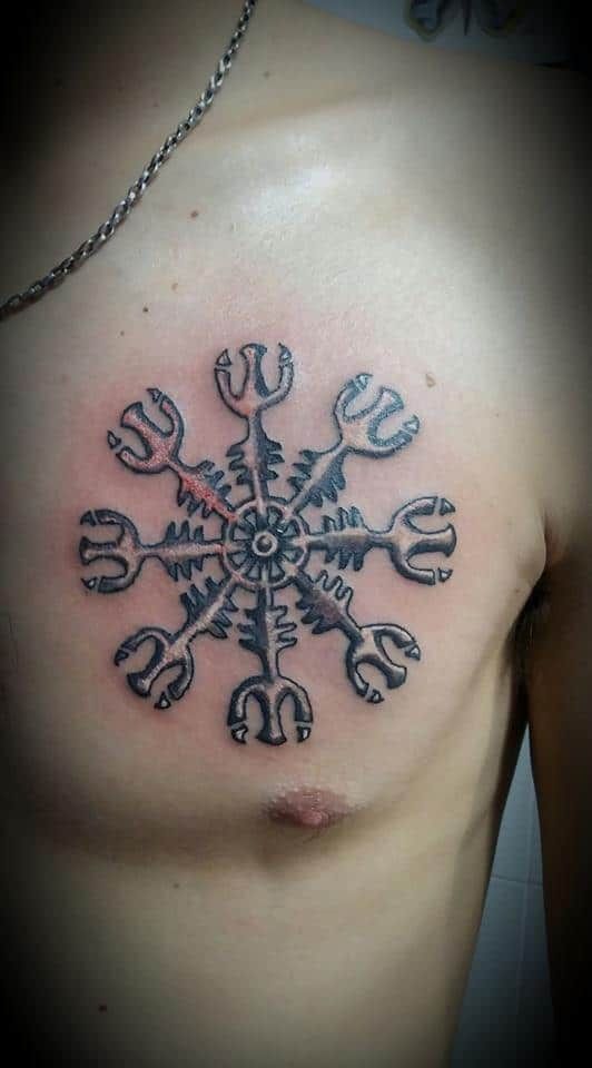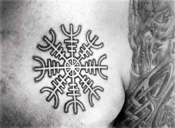 Tatuagem do Capacete do Terror ou Agiskhjalm - esboços e significados, onde aplicar (no braço, cotovelo, peito), trabalhos fotográficos