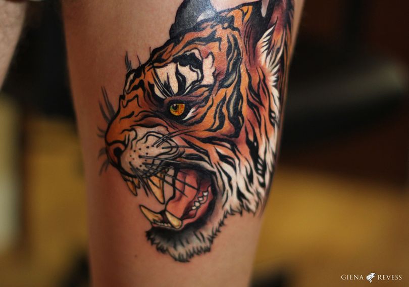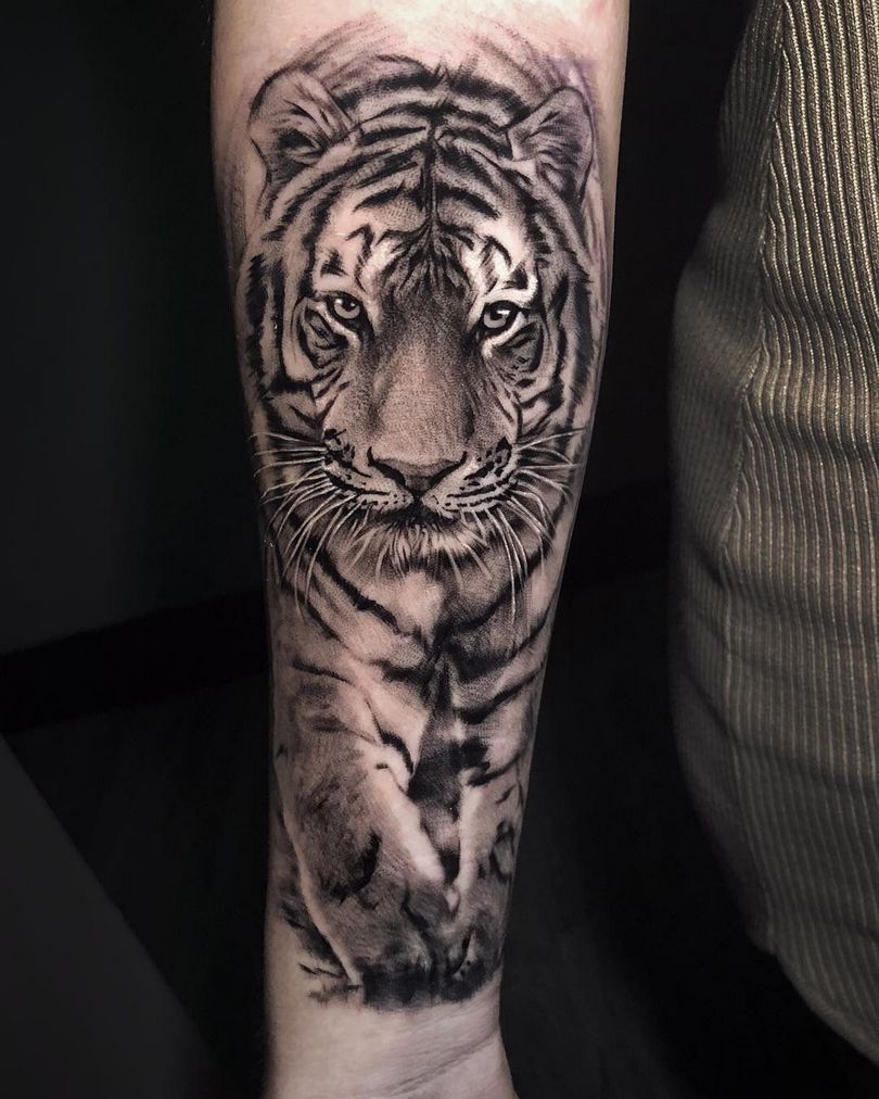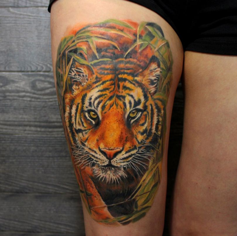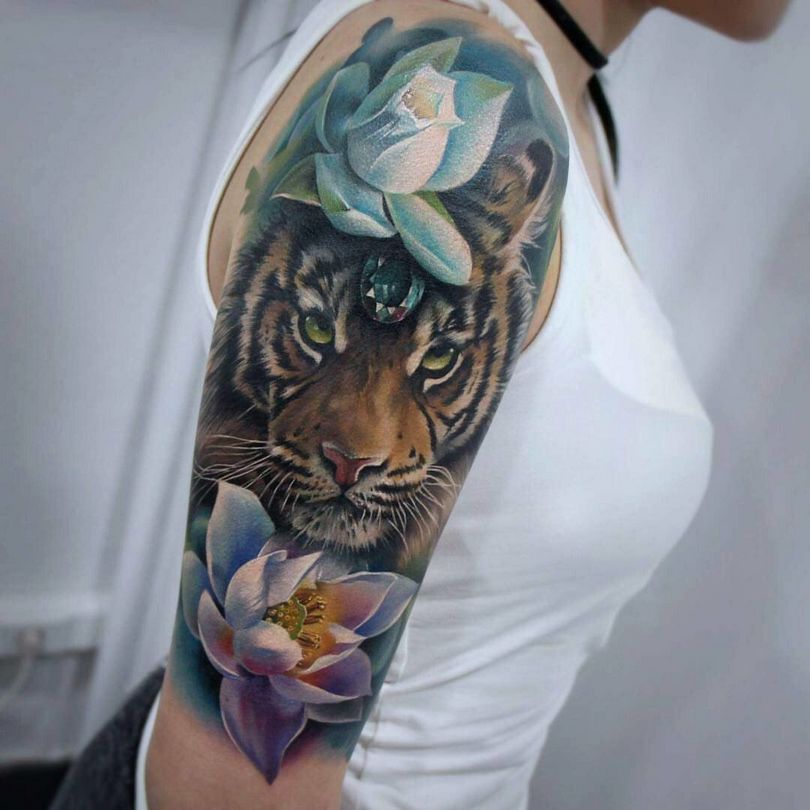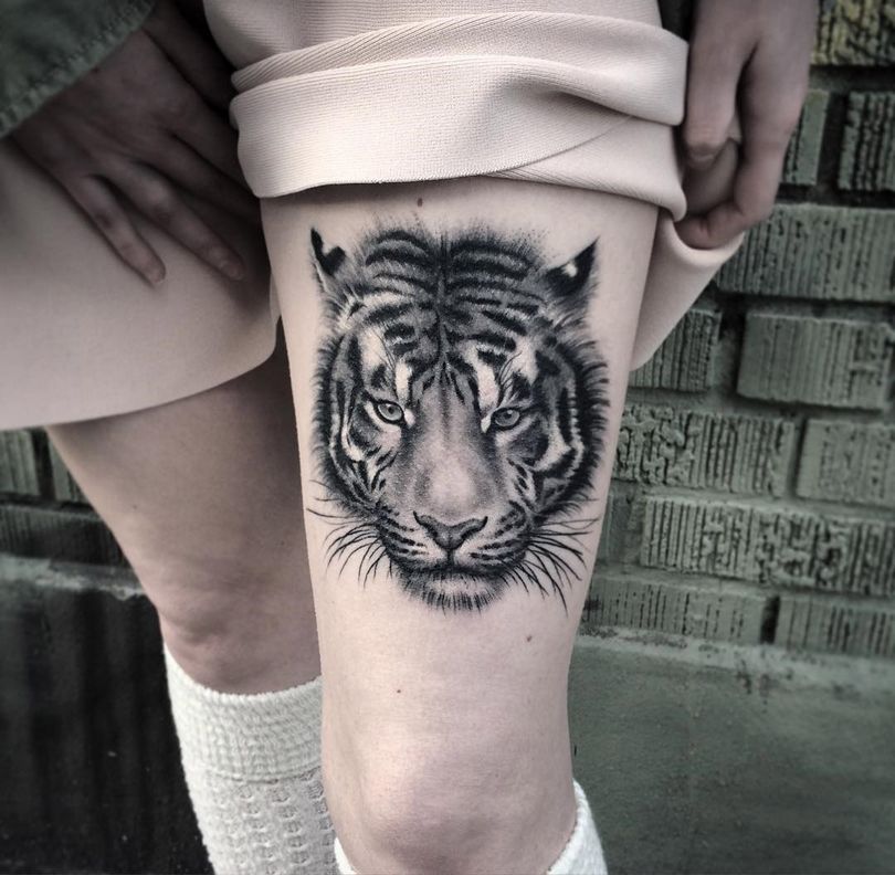 As raparigas adoram fazer uma tatuagem de um tigre no ombro sob a forma de um focinho em estado tranquilo, ou de um olho de tigre - é um talismã bem conhecido. O tigre tranquilo é uma força leve que é controlável, controlada pela mente. As fêmeas são também conhecidas por serem fortes e agressivas, principalmente devido à necessidade de proteger os seus descendentes. Se a prole estivesse em perigo, qualquer predador feminino seria mais assustador do que o seu marido com raiva. O tigre sabe como proteger o seu território e não tolera a intrusão, que é um comportamento natural e razoável de um ser vivo.