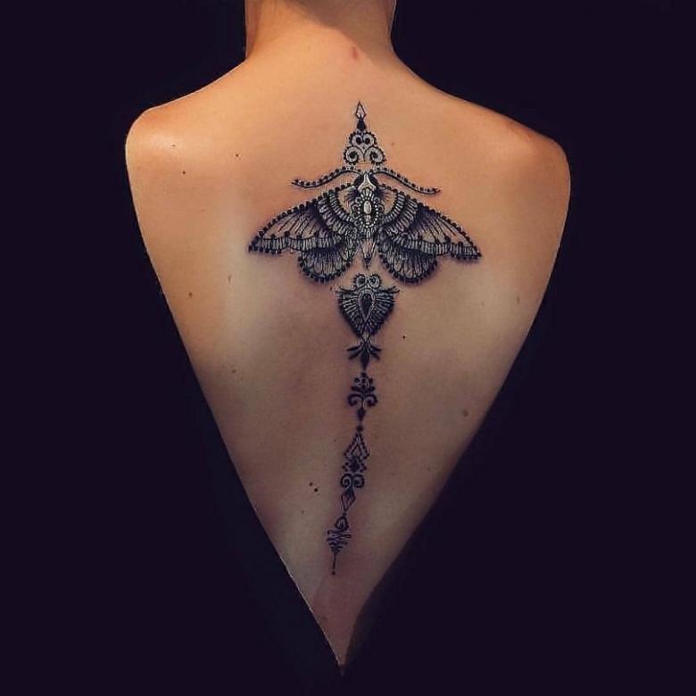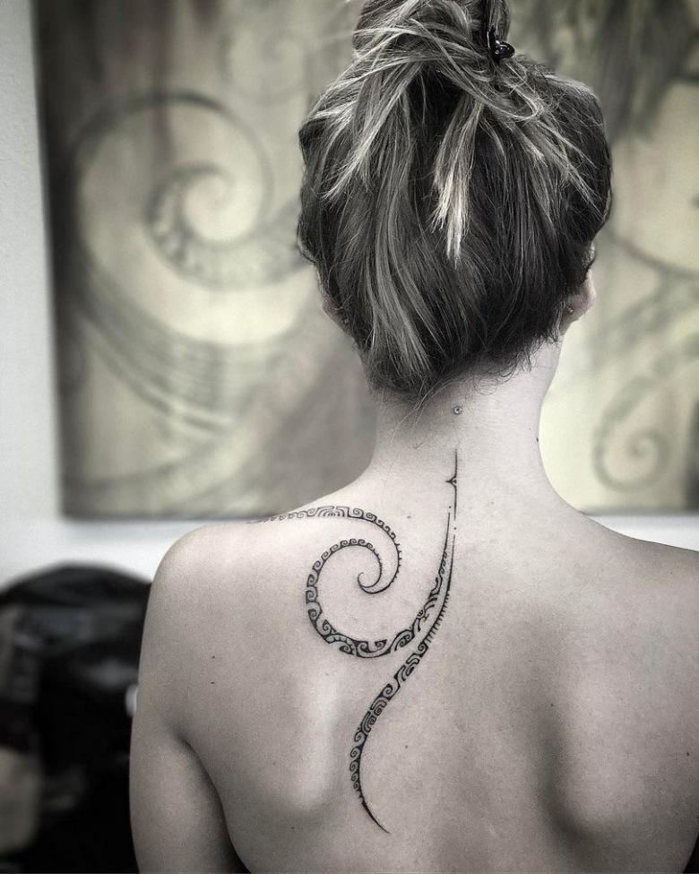 L'éclectisme (un mélange de styles) en 2020-2021 combine les géométries avec des tendances florales ou animales. Un bijou aussi strict et pourtant sophistiqué peut être porté aussi bien au bureau que lors d'une fête de fraternité. Les lignes claires sur le corps ne doivent pas être déformées par le mouvement. Dans ce modèle, les images sont donc meilleures sur l'omoplate, l'épaule ou le sacrum.