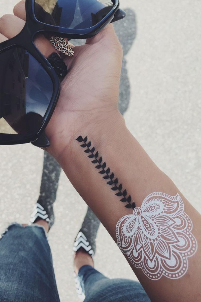 Parmi les nouveautés pour cette année et l'année prochaine, les dessins dans le style arabe "mehendi" gagnent en popularité. Cette technique ancienne a une profonde signification féminine et constitue une sorte d'amulette. Un délicat motif floral peut être placé sur le poignet, la main, la hanche ou la cheville d'une fille.