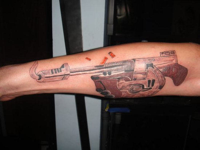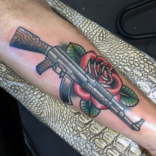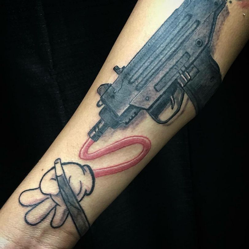 O persoană care a ales să își tatueze o armă este de obicei o persoană corectă și foarte morală. Ei au o intuiție bine dezvoltată, văd esența fenomenelor și proceselor care au loc în viață, pot trage concluzii pe baza unor date obiective. Astfel de oameni au un bun simț al umorului, pentru că un automat are capacitatea de a trage rapid și direct în țintă.