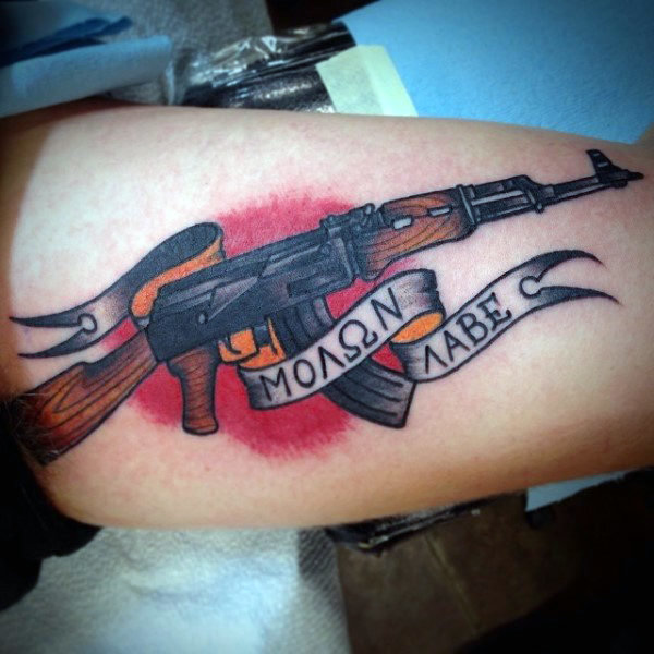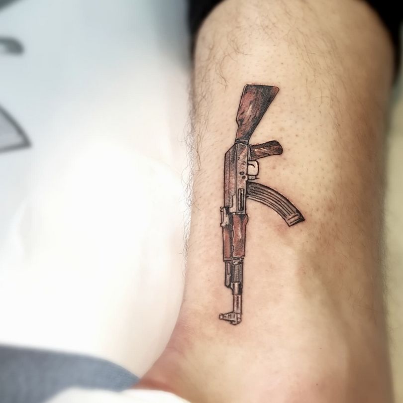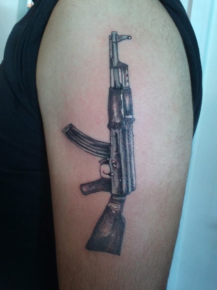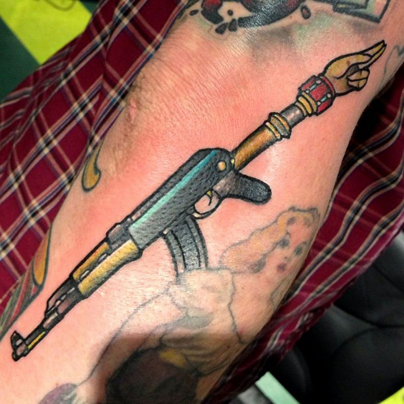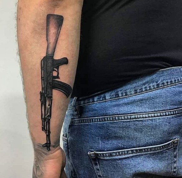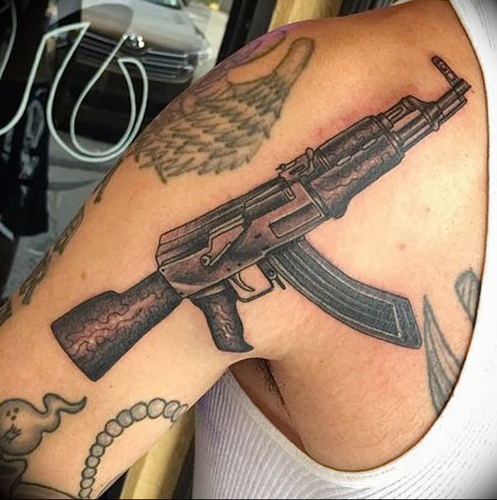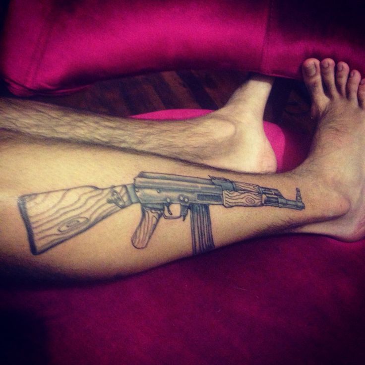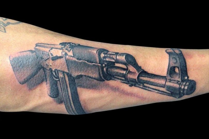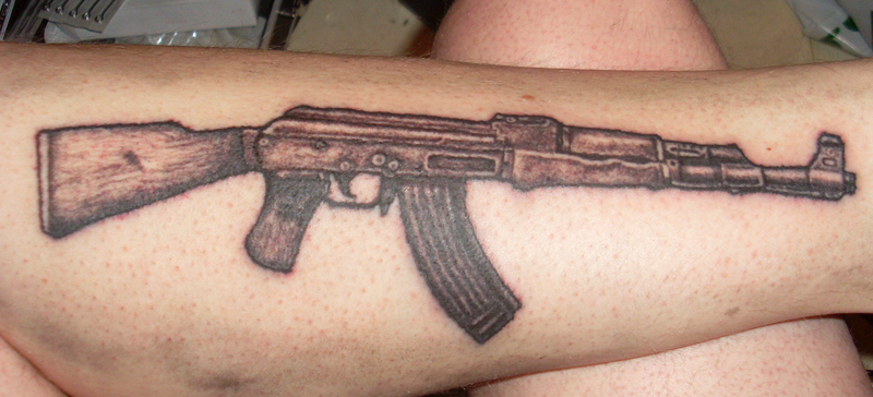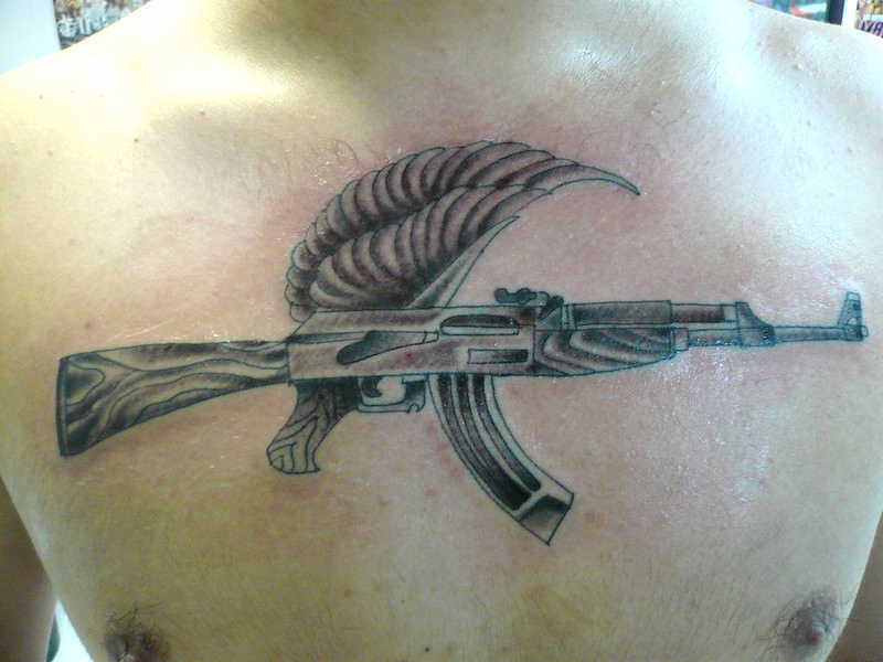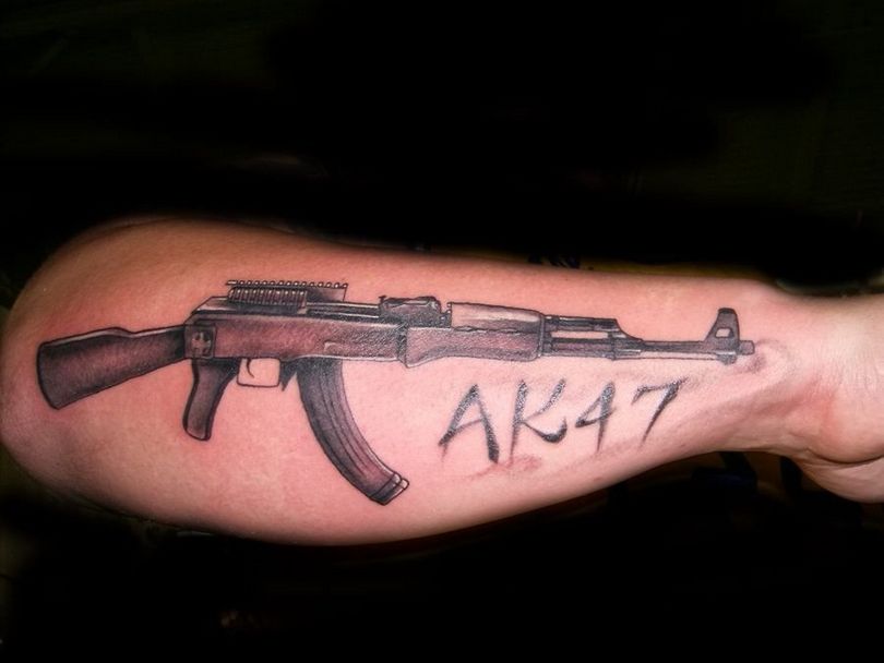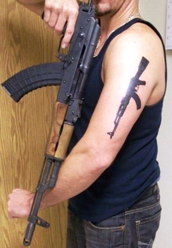 Tatuaj mitralieră - o descriere completă, schițe și semnificație (inclusiv tatuaj Kalașnikov sau ak47), plasare, fotografii