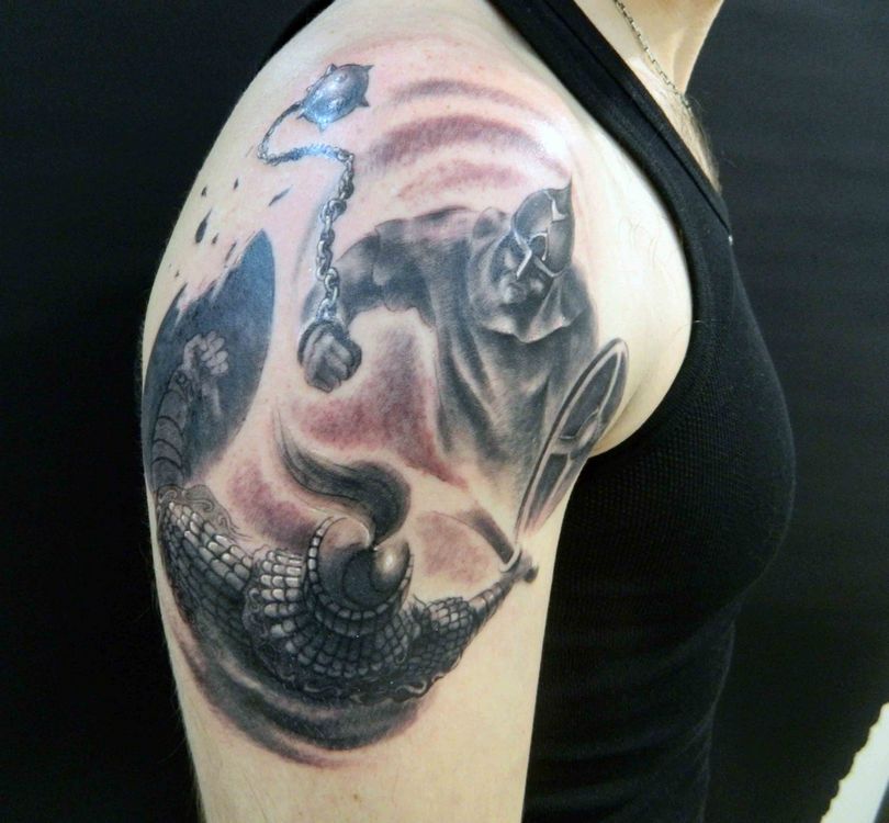 Poate că, odată ce proprietarul tatuajului bogatyr s-a confruntat cu încercări, a trebuit să-și dezvolte rezistența și curajul în fața pericolului. Imaginea aleasă ar putea inspira o persoană să lupte împotriva unui adversar, a unei circumstanțe dificile.
