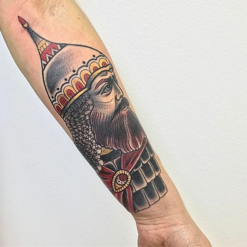 Un set de idei care unește tatuajul cu bogatyrs rusesc include următoarele calități: