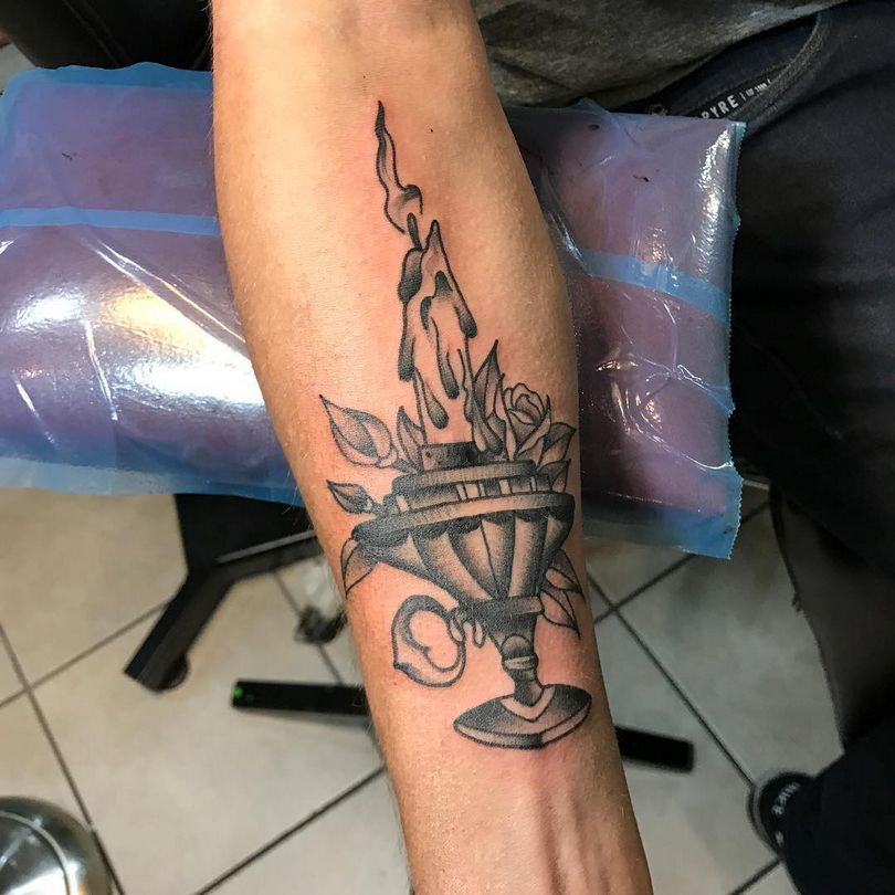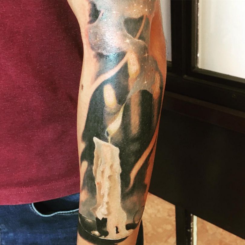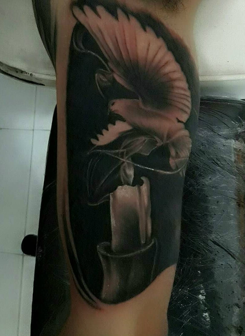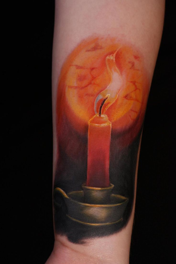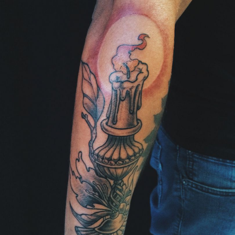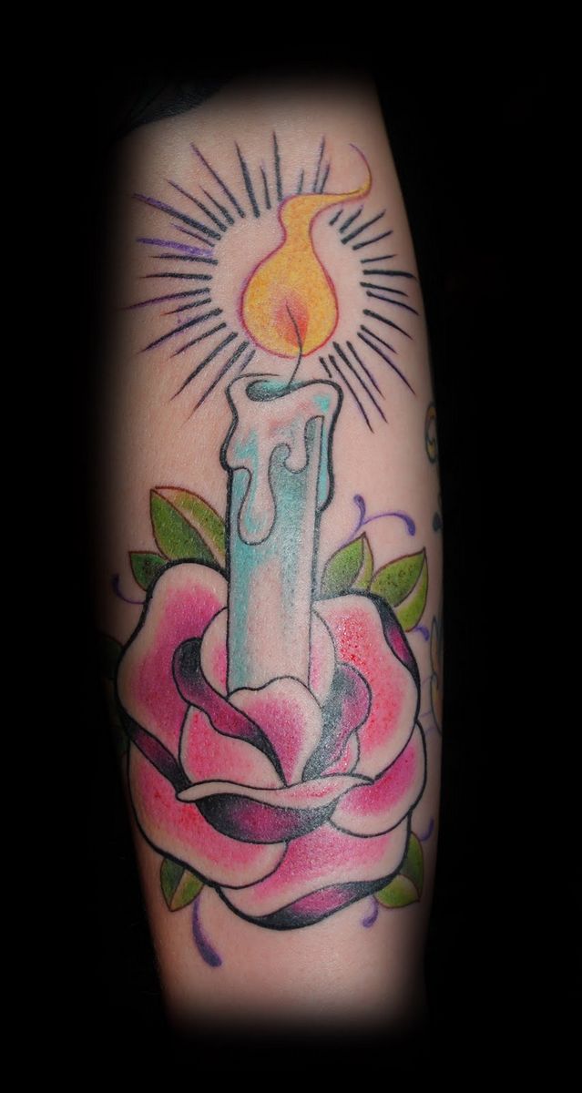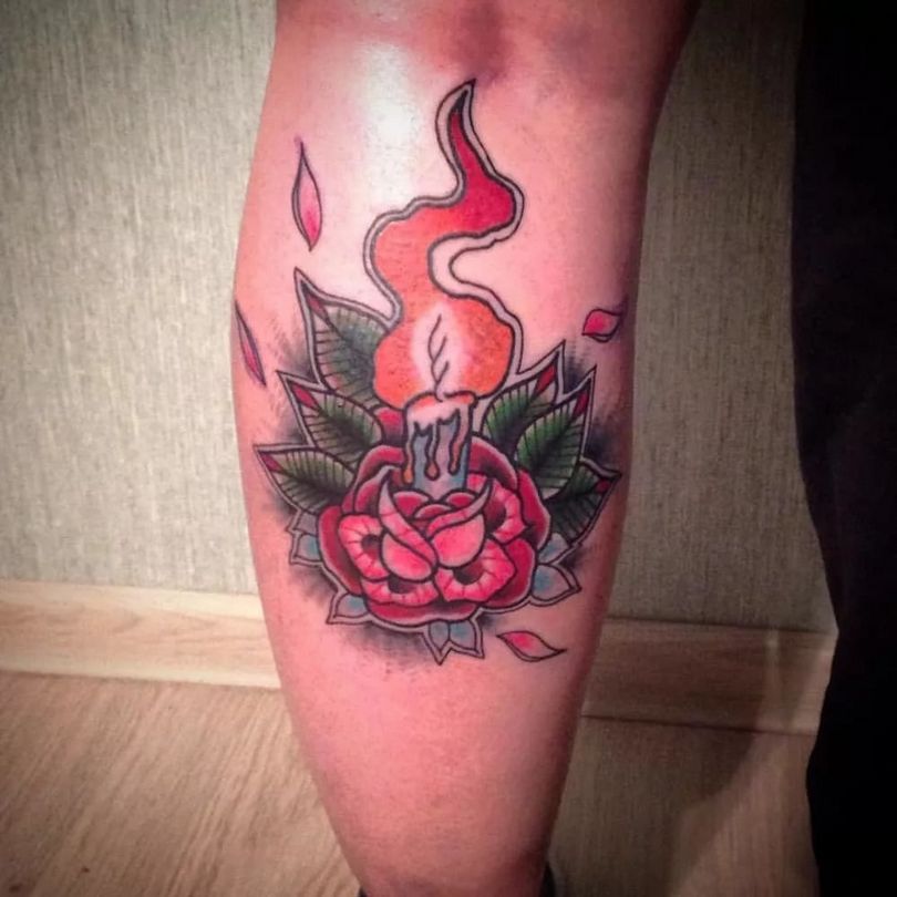 - Romantism și subtilitate de percepție, pentru naturile romantice, adesea imaginea unei lumânări este combinată cu flori sau alte motive florale, iar semnificația tatuajului este completată de culori și nuanțe luminoase.