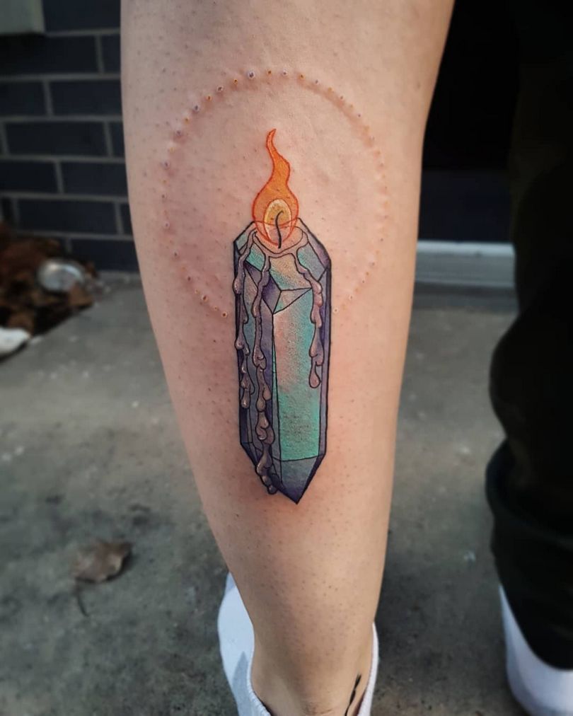 Tatuaje schematice sau artistice, lumânarea poate reprezenta o mică flacără de speranță, care risipește întunericul din viața unei persoane. Adesea, astfel de tatuaje sunt făcute pentru a comemora persoane dragi, evenimente de viață sau puncte de cotitură, ca o amintire a călătoriei parcurse și a succeselor obținute.