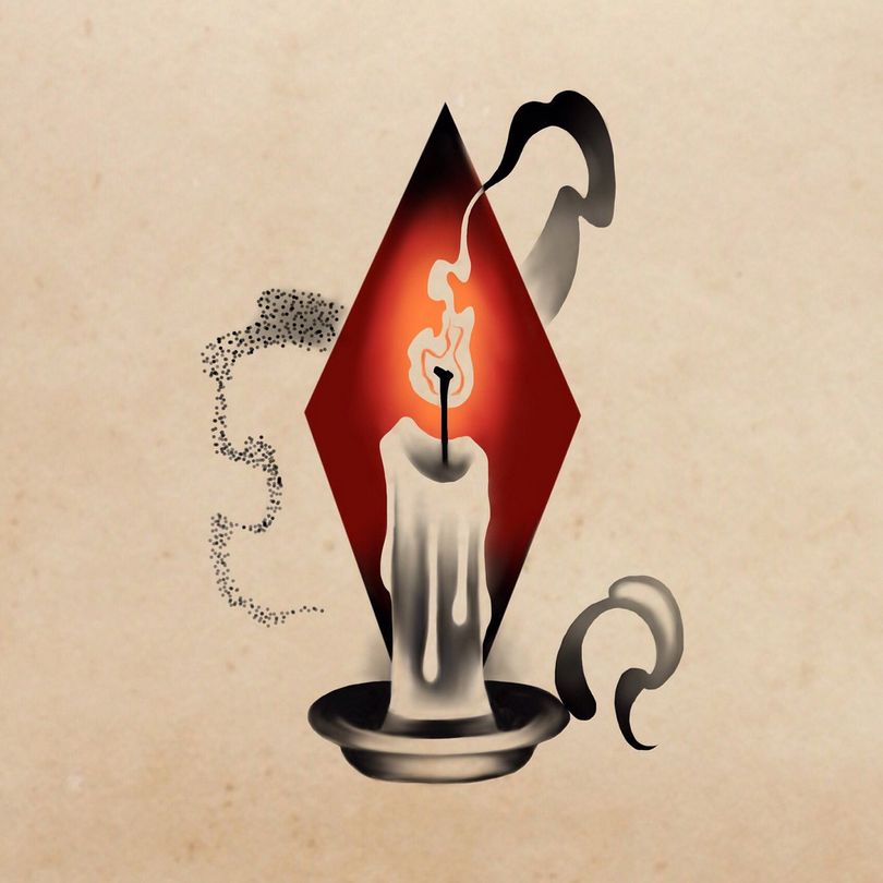 - o picătură de ceară, simbolizează pocăința și remușcarea pentru deciziile și acțiunile cuiva;