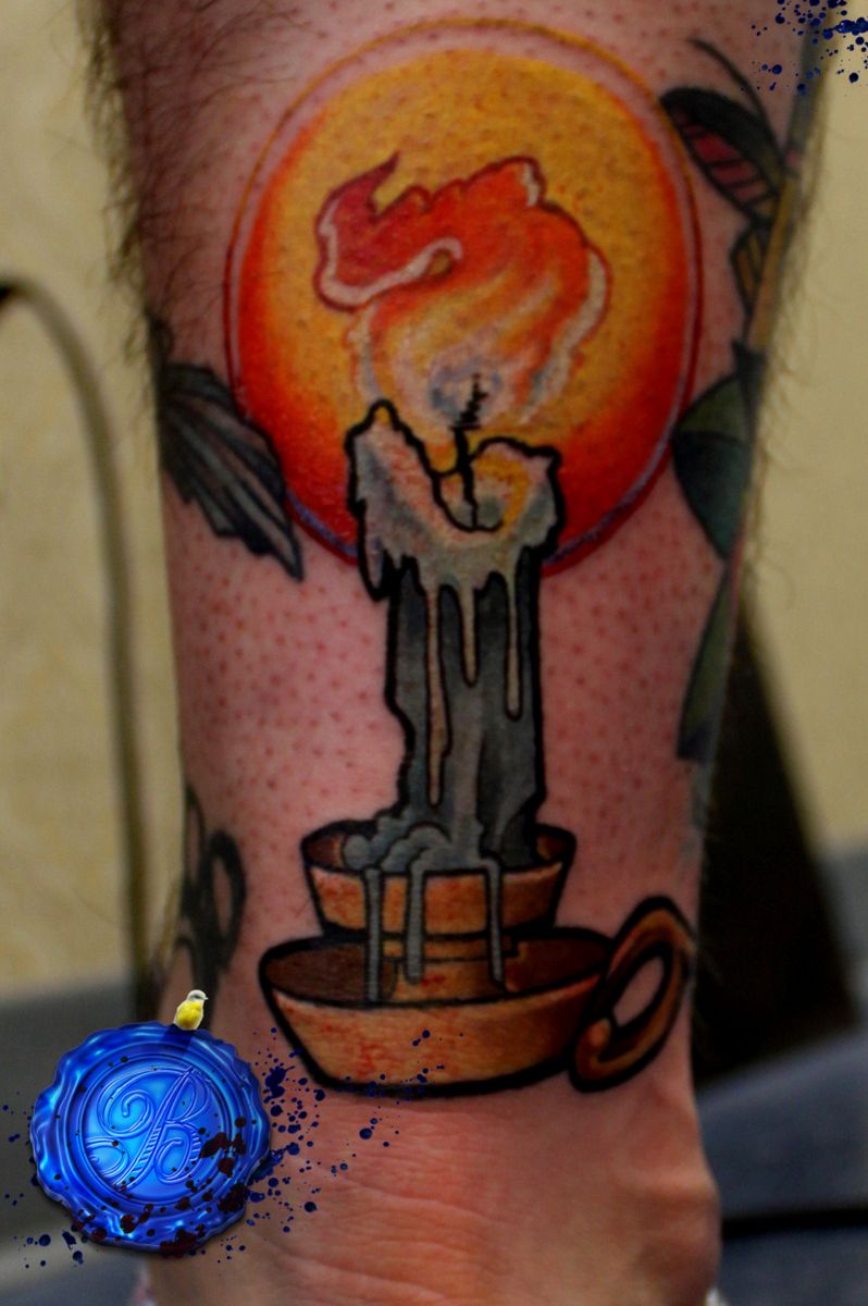 - Mitologia slavă interpretează imaginea unei lumânări aprinse în tatuaj ca fiind un foc sacru, un element puternic și miraculos. O lumânare aprinsă este un simbol al purificării de forțele malefice, al protecției împotriva influențelor magice asupra destinului, al respectului față de forțele puternice ale naturii și al recunoașterii imperfecțiunii naturii umane;