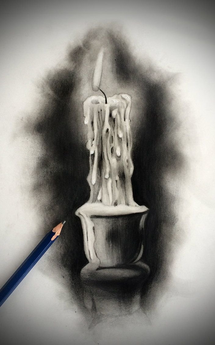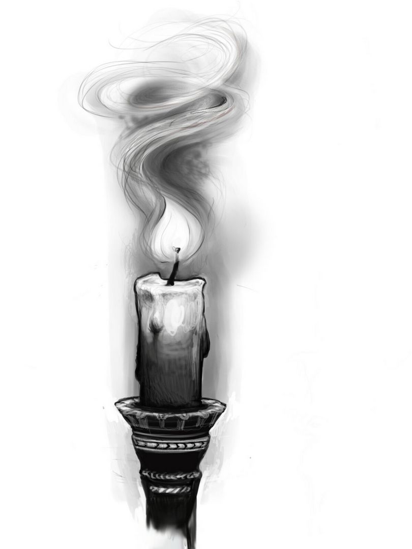 În schiță, lumânarea poate arde puternic sau se poate aprinde, flacăra poate fi distinctă sau se poate stinge în bătaia vântului sau a picăturilor de ploaie.