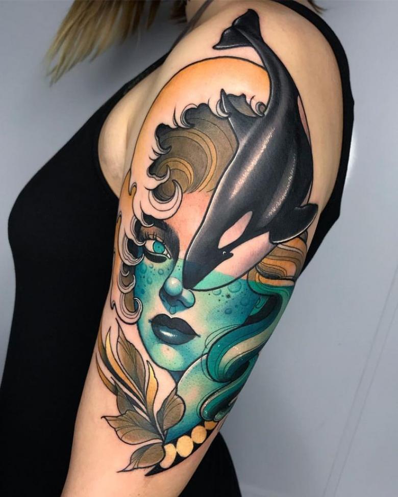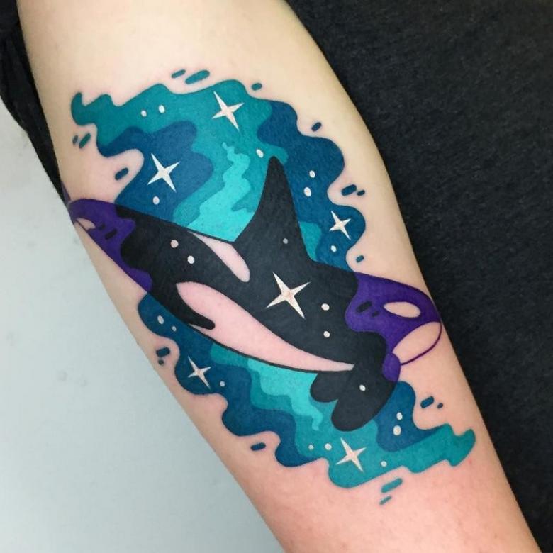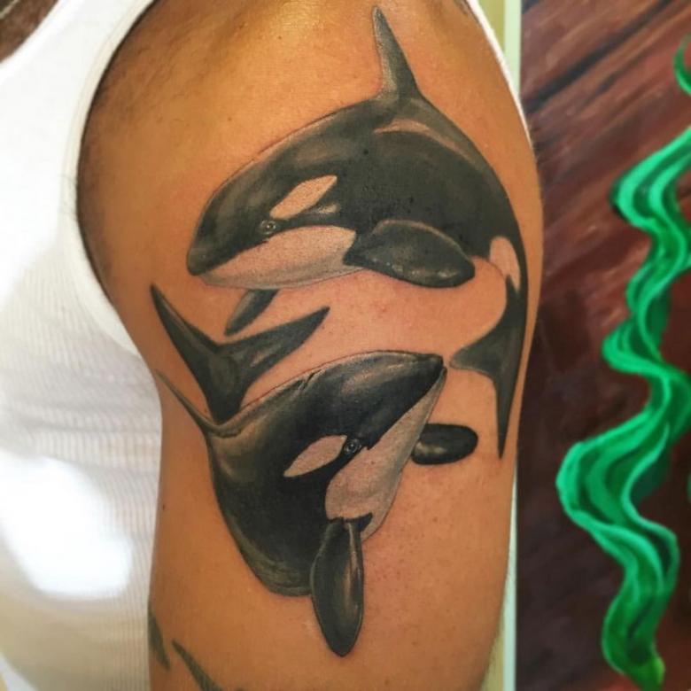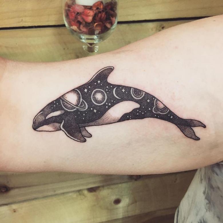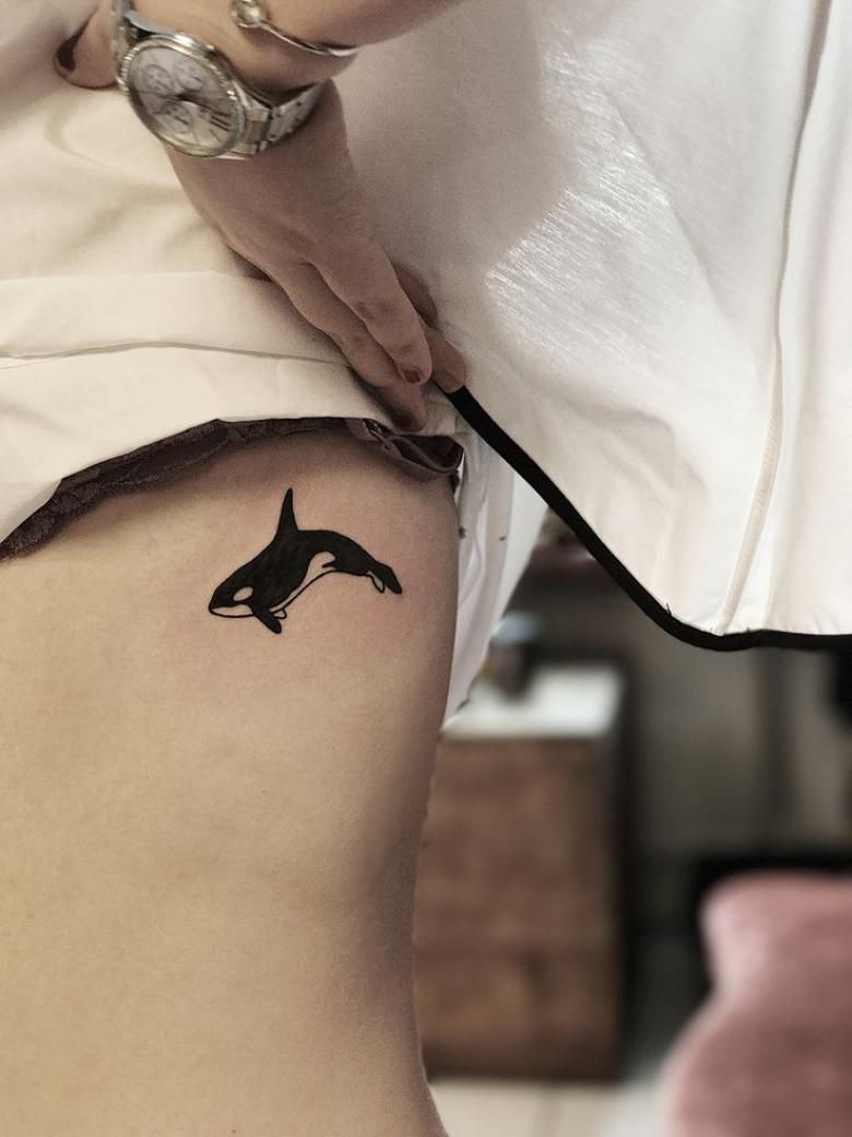 Vďaka ich výraznému čierno-bielemu sfarbeniu a mohutnej chrbtovej plutve si ich nemožno pomýliť s inými vodnými živočíchmi. Mohutný a výrazný vzhľad týchto krásavíc vo vás vždy vyvolá túžbu obliecť si túto siluetu na telo. Aké posolstvo teda tento vzor vyjadruje?