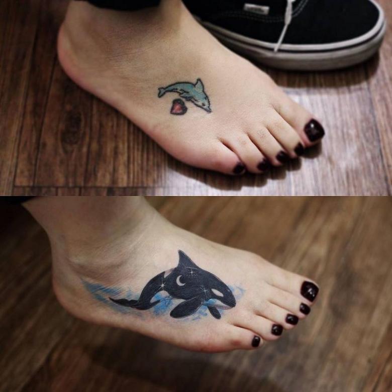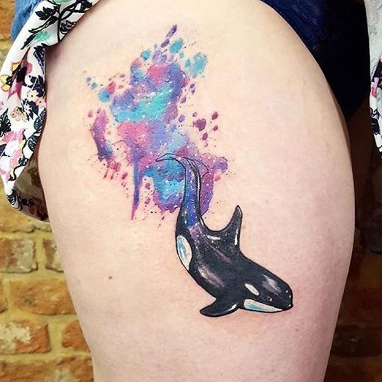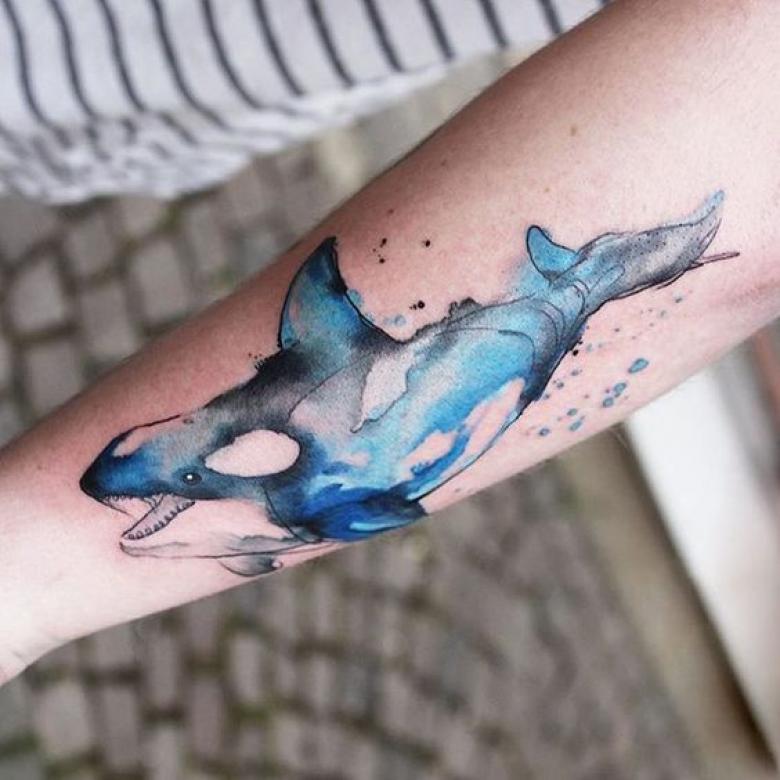 Výber tetovania Kasatka zvláštne romantické, úprimné, jemne citlivé ľudí. Tento druh amuletu, ktorý predstavuje prekážku proti nepriazni osudu.