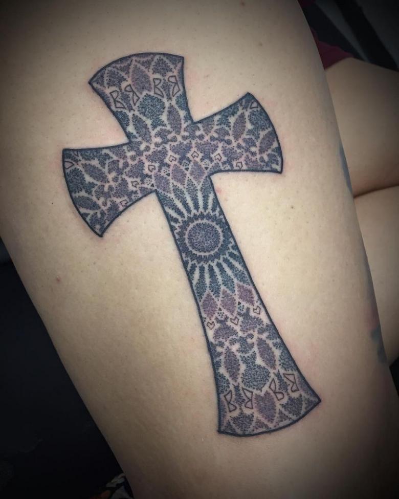 Tradične sa tetovanie kríža aplikuje v jednofarebnej schéme, ale v prípade potreby možno zobraziť farebný dizajn s viacerými odtieňmi. Každý sa môže poradiť so skúseným remeselníkom, vybrať si skicu z tých najobľúbenejších a ozdobiť sa originálnym umeleckým dielom s rôznymi významami: