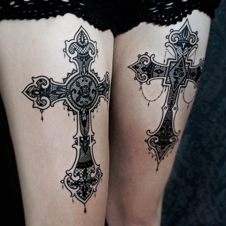 Každý muž alebo žena si môže vybrať zaujímavý a štylizovaný obraz kríža na ozdobu svojho tela bez toho, aby sa riadil výlučne náboženskými motívmi. Nemôžeme povedať, že existuje mužský alebo ženský symbol kríža, ale mužskosť a ženskosť dizajnu môžete zdôrazniť ďalšími prvkami.
