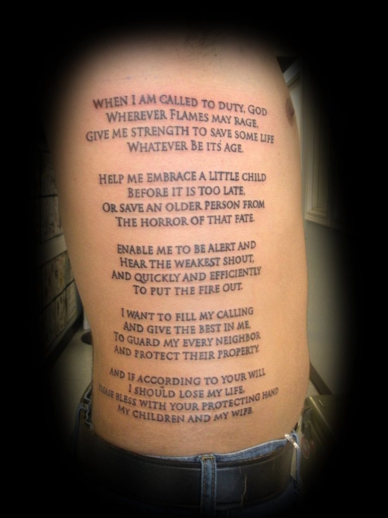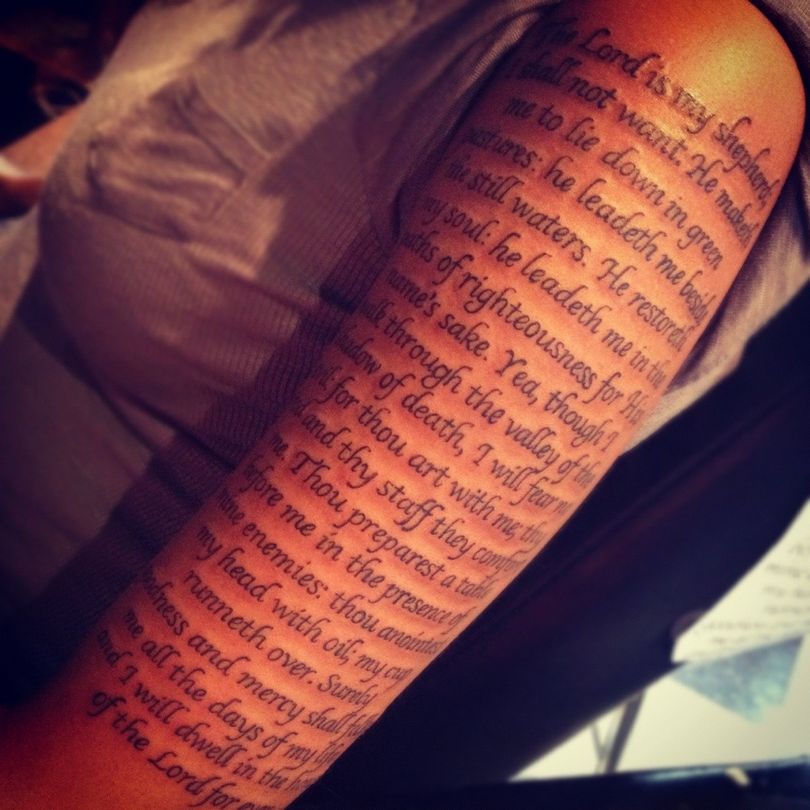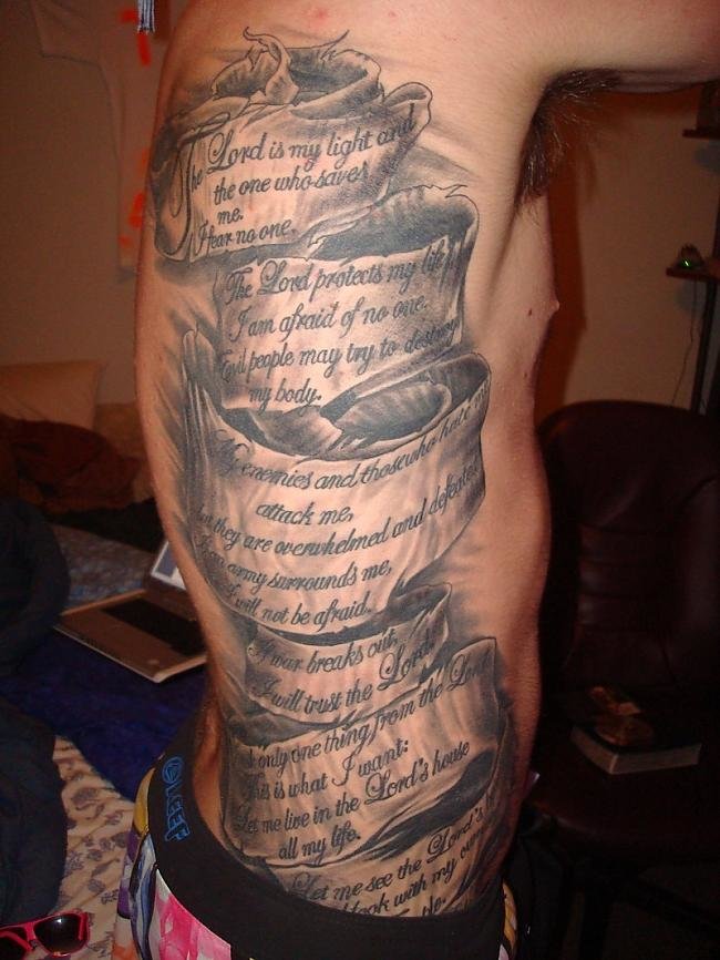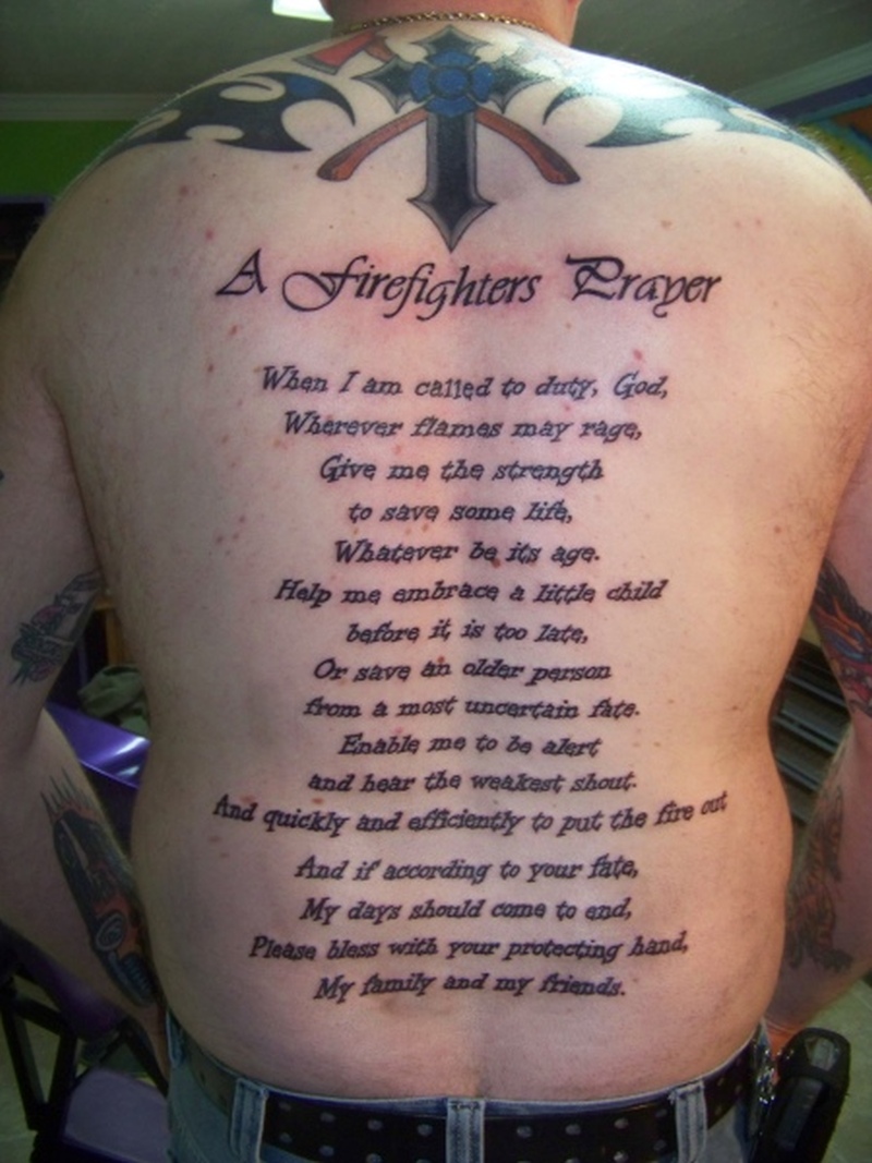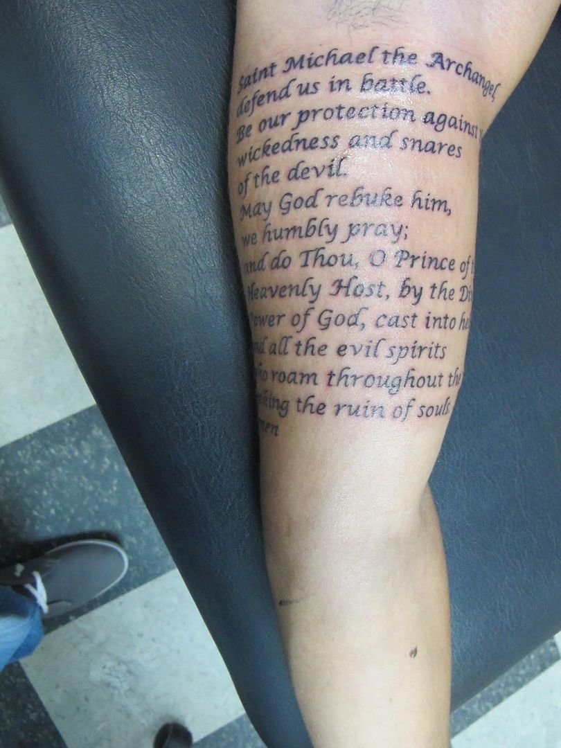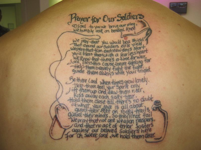 Obľuba náčrtov s modlitbami všetkých typov je často pomerne vysoká - možno tu nájsť citáty z Biblie, Koránu, budhistických spisov a hinduistických véd. Je však dôležité pochopiť, že duchovní rôznych denominácií tento spôsob zdobenia tela neschvaľujú. Ľudia však chcú týmto spôsobom dosiahnuť iné ciele - ochrániť sa pred zlými silami a získať dôveru v podporu Stvoriteľa.