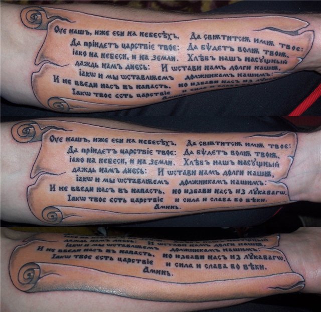 Tetovanie textov modlitieb a požehnania, vzývanie bohov, poďakovania a venovania - to všetko môže byť stelesnené vo forme tetovania modlitby na koži mnohých majiteľov.