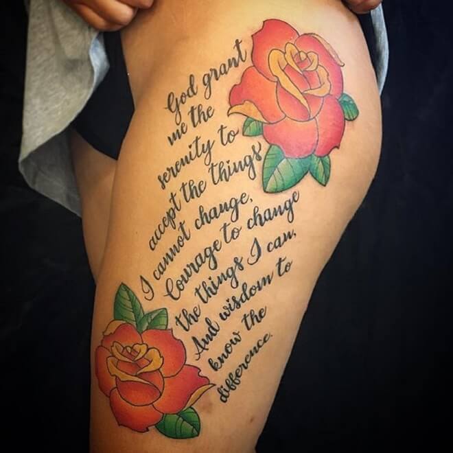 Takéto tetovanie je najlepšie nad pásom. Aby sa text dobre čítal a nemýlil, umiestňuje sa na chrbát, lopatku, pozdĺž predlaktia.