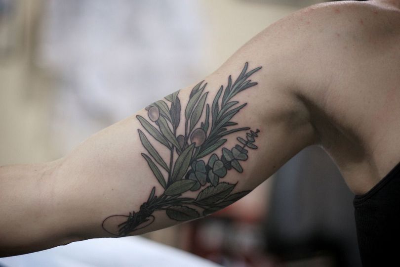 Tetovanie olivovej vetvy - významy pre dievčatá a mužov, miesta (na kľúčnej kosti, krku, ramene, zápästí), populárne vzory, fotografie a nápady na video