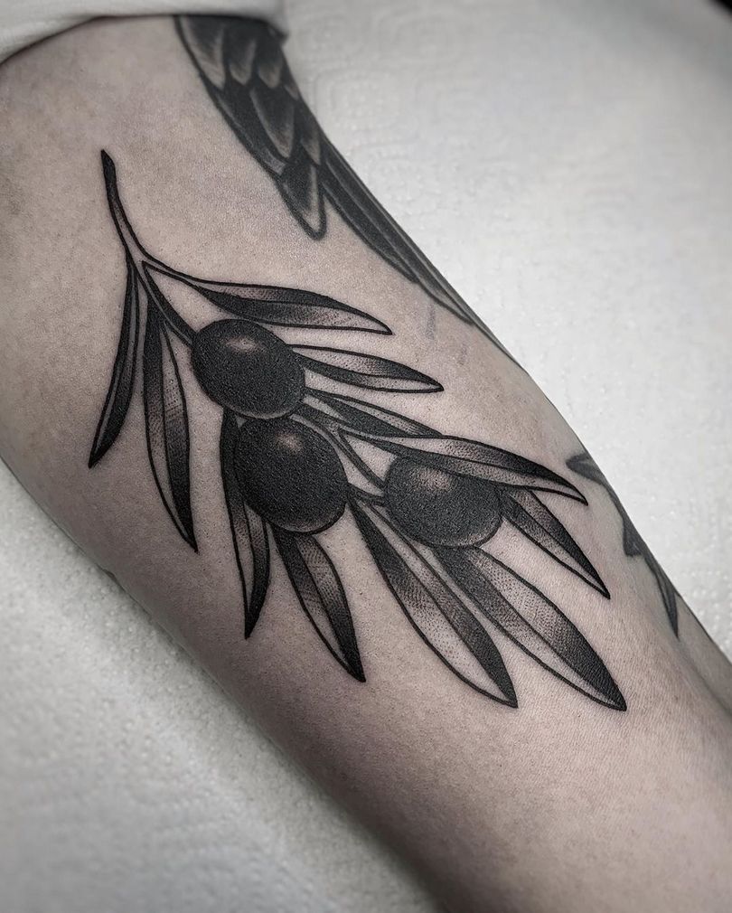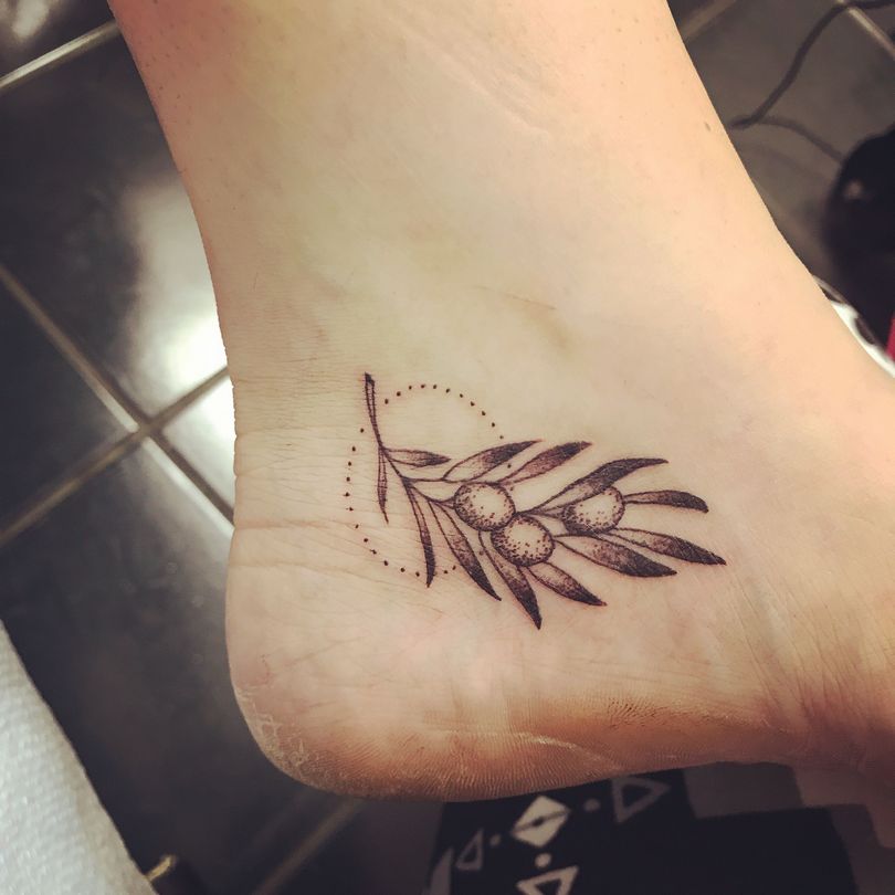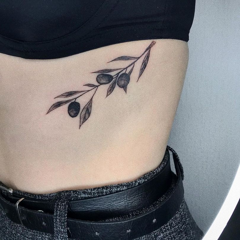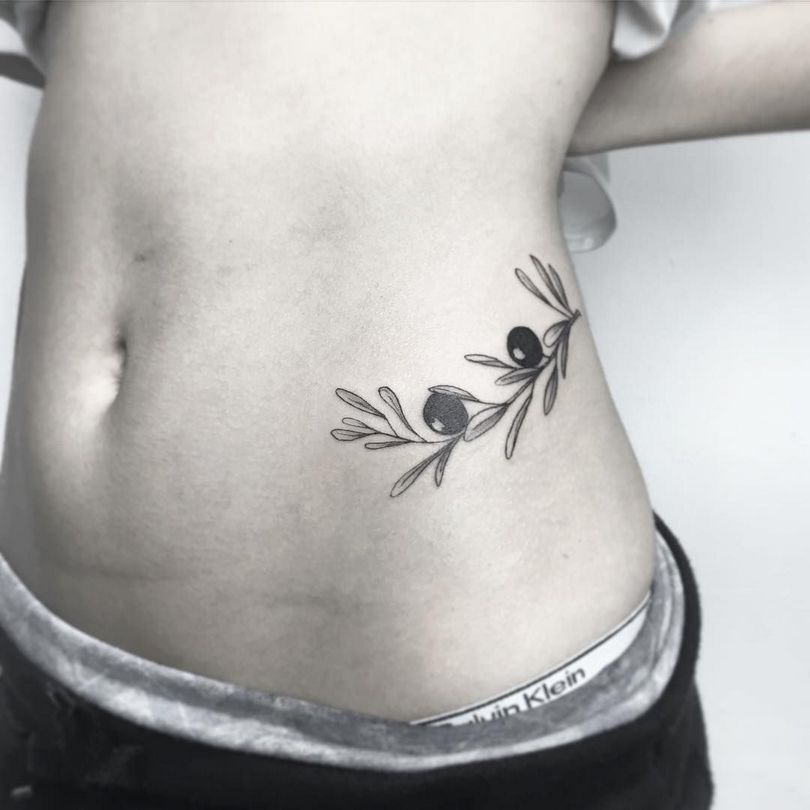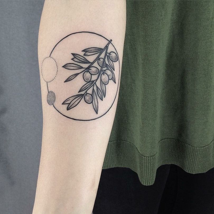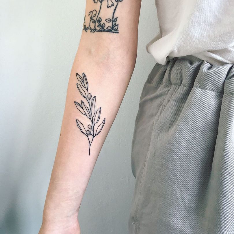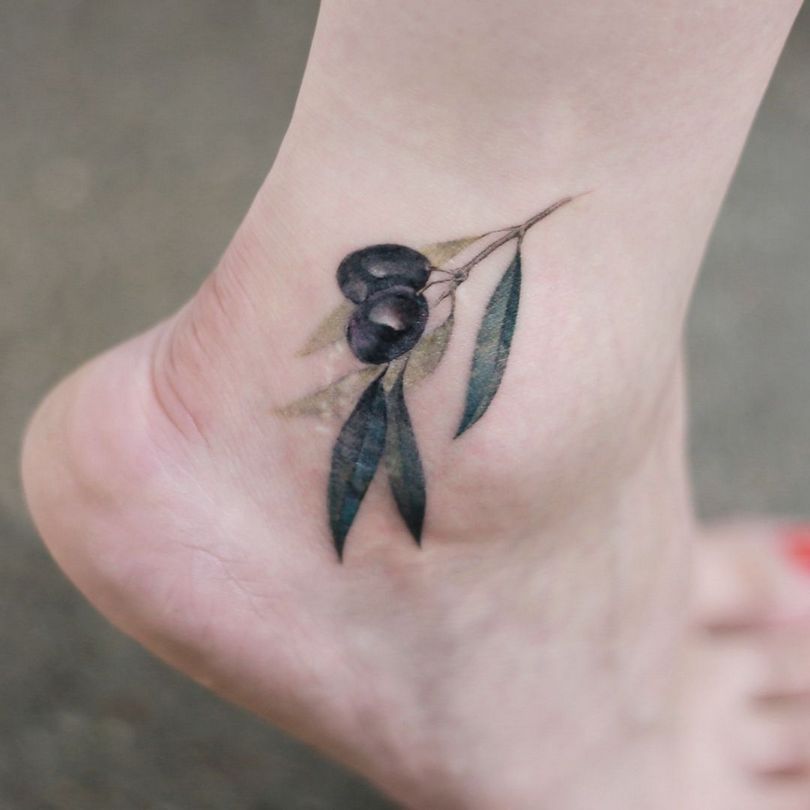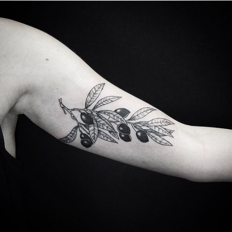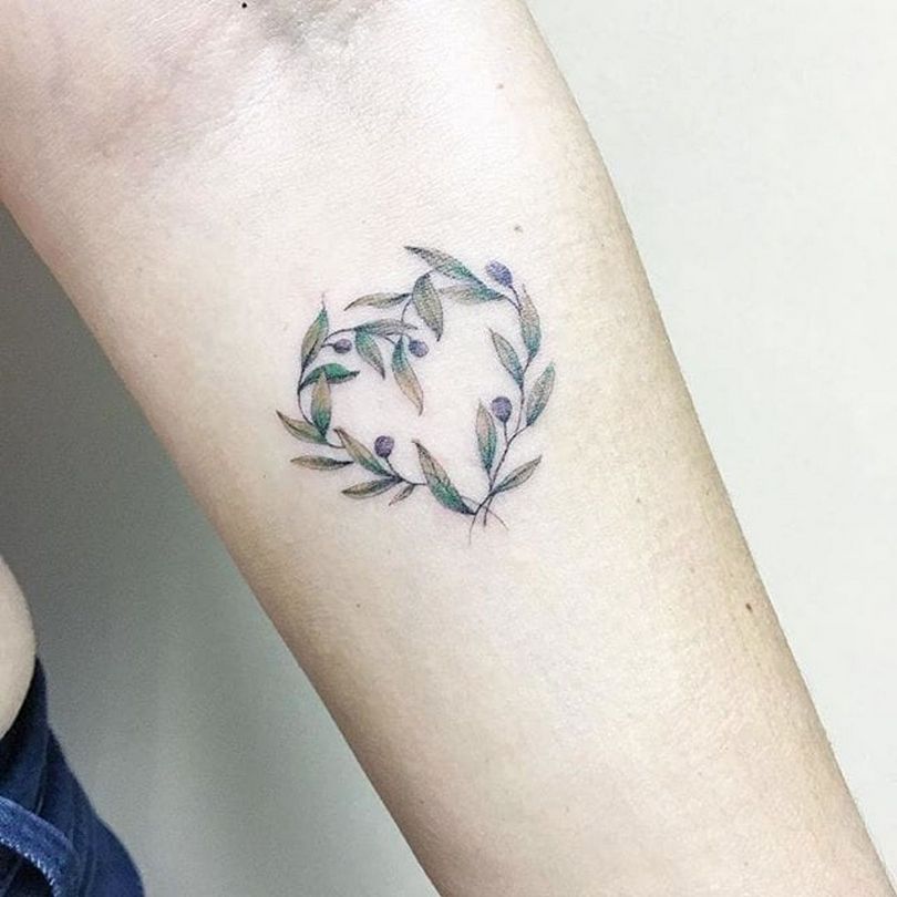 Toto je malé tetovanie. Môžete si ho teda umiestniť na rôzne časti tela. Veľmi nezvyčajné je aj pridávanie akýchkoľvek ďalších prvkov do obrazu. Najkrajšími príkladmi sú jedna alebo dve skrížené vetvy s listami a niekoľkými olivami. Uvidíte, že väčšina nápadov je v čiernych a sivých tónoch, čo ich robí ešte sofistikovanejšími a jednoduchšími.