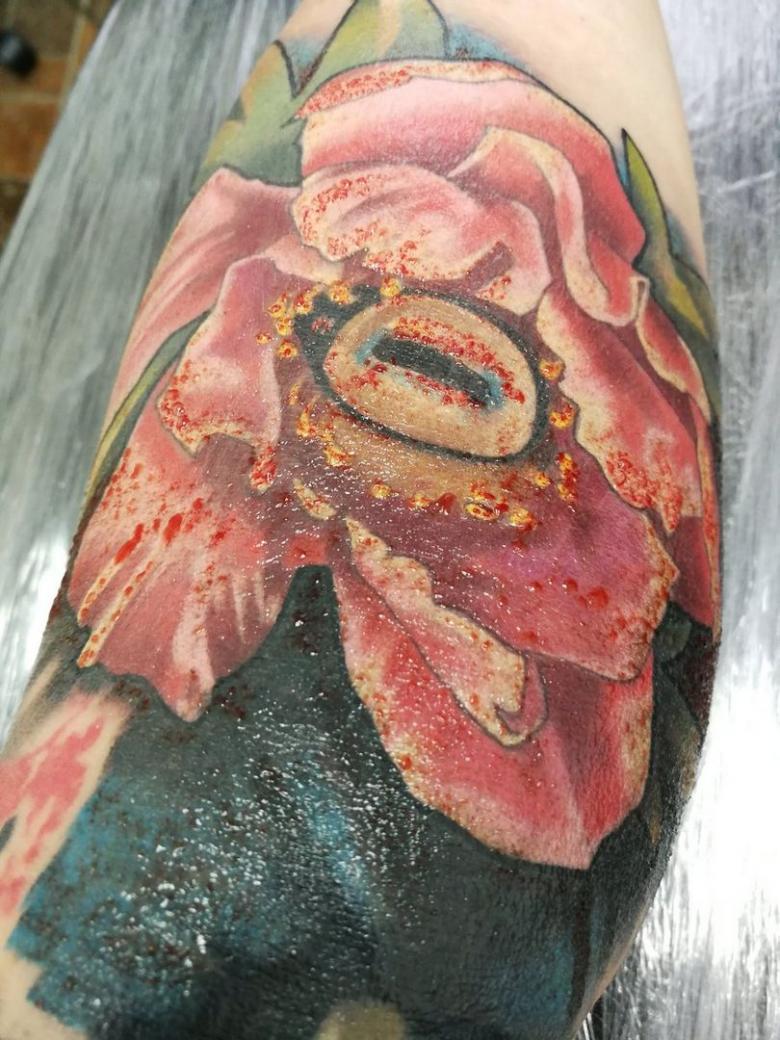 - Le tatouage saigne, même 24 heures après avoir été appliqué.
