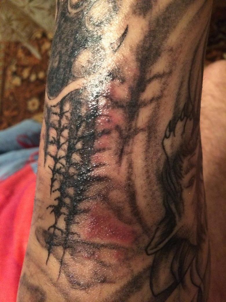 Les symptômes ci-dessus indiquent que la première phase de l'inflammation n'a pas évolué vers une phase régénérative, mais vers une phase purulente. Cela risque non seulement de gâcher l'apparence du tatouage, mais aussi d'entraîner des problèmes de santé tels qu'une infection.