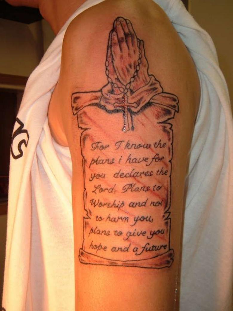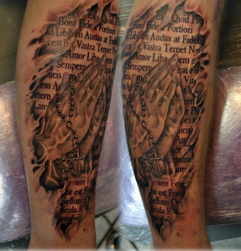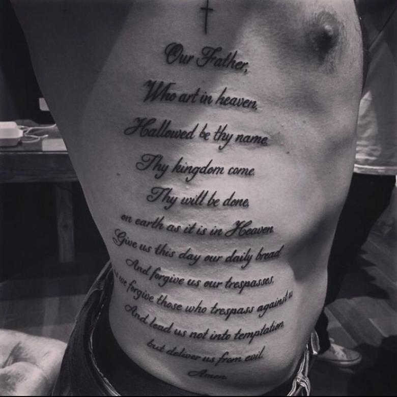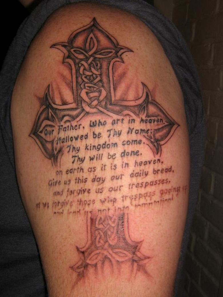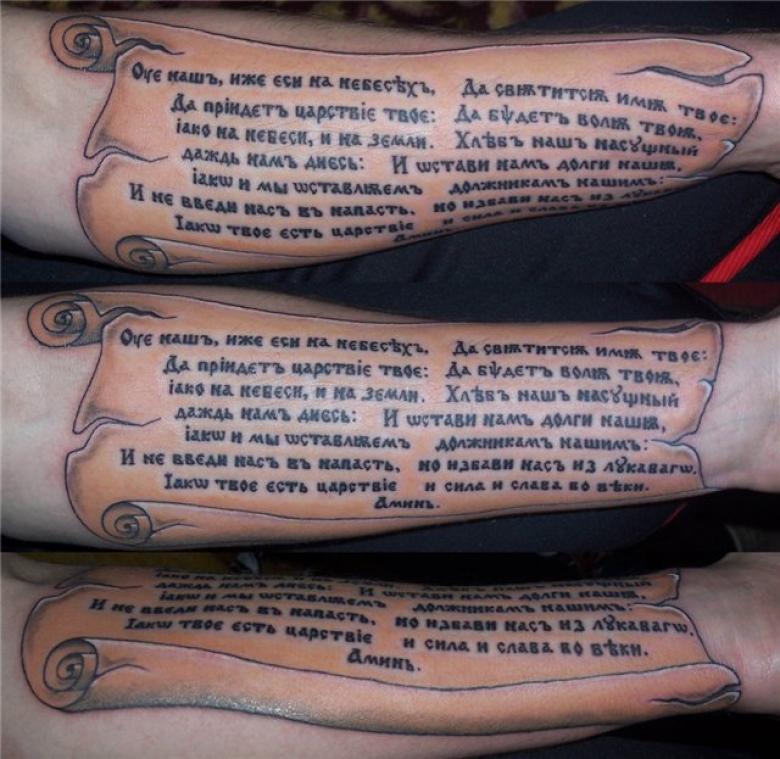 Priljubljenost skic z molitvami vseh vrst je pogosto zelo velika - najdemo lahko citate iz Svetega pisma, Korana, budističnih svetih spisov in hindujskih Ved. Vendar je treba razumeti, da duhovniki različnih veroizpovedi ne odobravajo takšnega načina okraševanja telesa. Toda ljudje želijo na ta način doseči različne cilje - zaščititi se pred zlobnimi silami in pridobiti zaupanje v podporo Stvarnika.