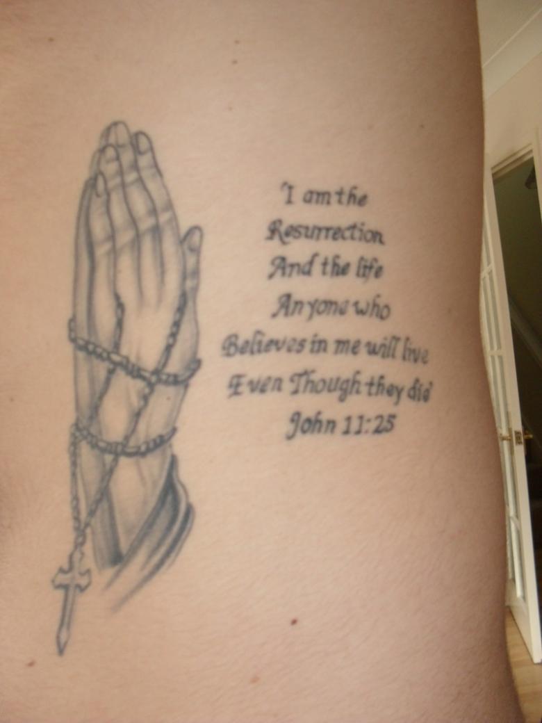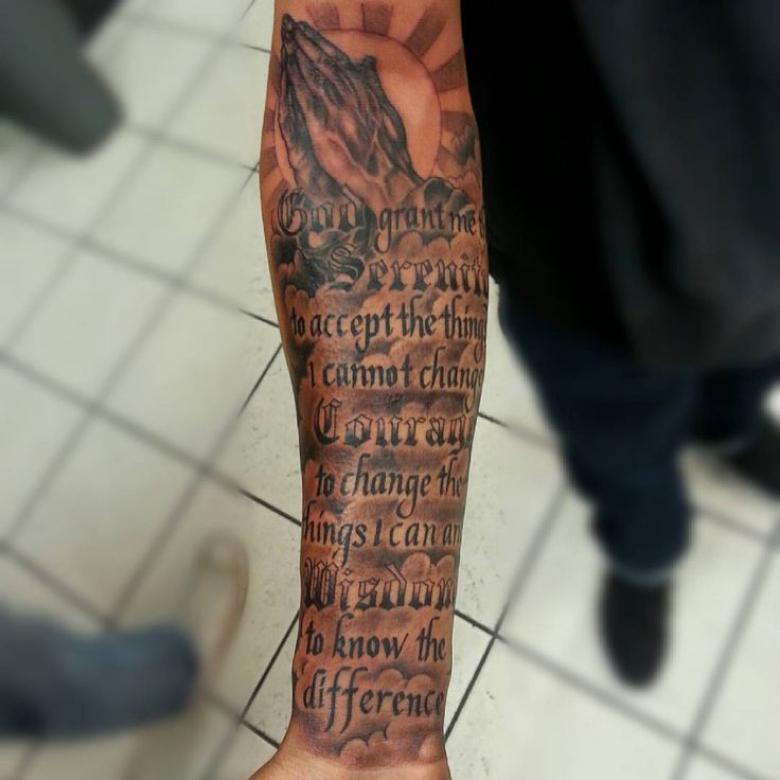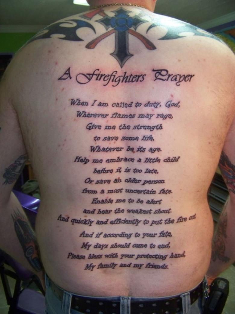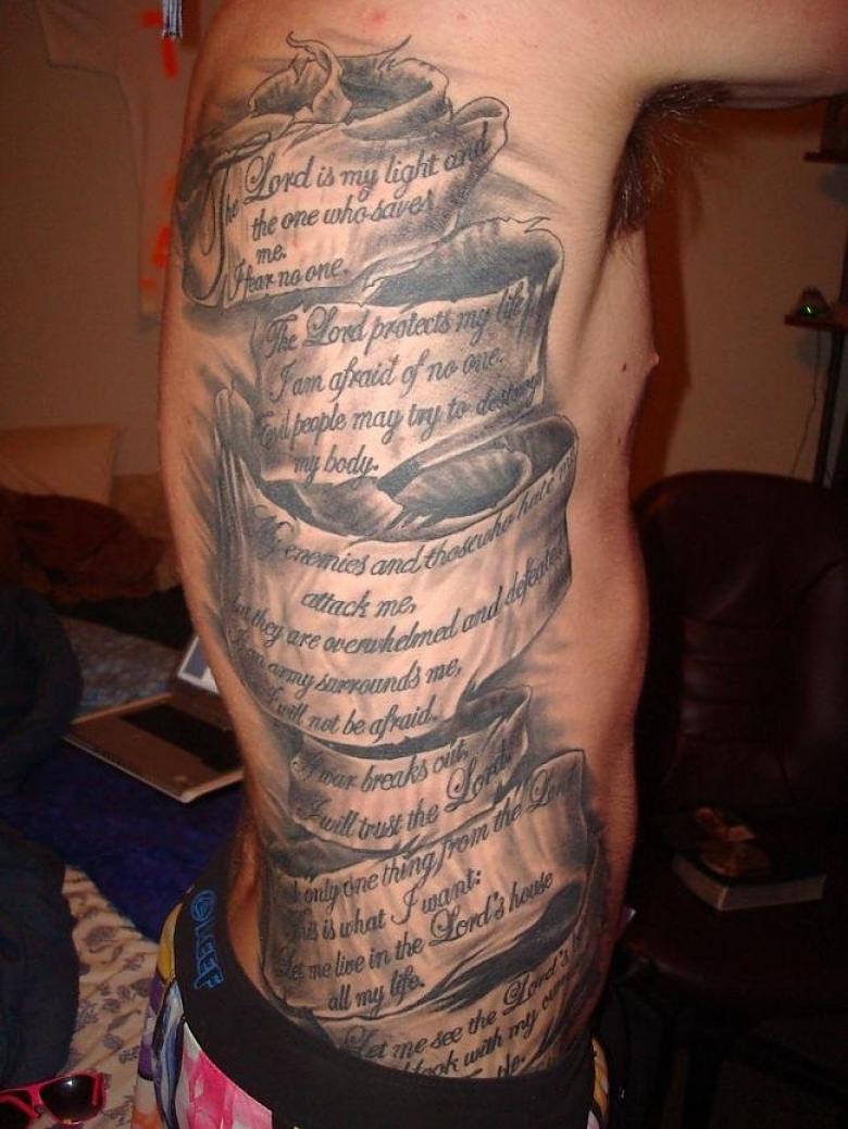 Priljubljenost skic z molitvami vseh vrst je pogosto zelo velika - najdemo lahko citate iz Svetega pisma, Korana, budističnih svetih spisov in hindujskih Ved. Vendar je treba razumeti, da duhovniki različnih veroizpovedi ne odobravajo takšnega načina okraševanja telesa. Toda ljudje želijo na ta način doseči različne cilje - zaščititi se pred zlobnimi silami in pridobiti zaupanje v podporo Stvarnika.